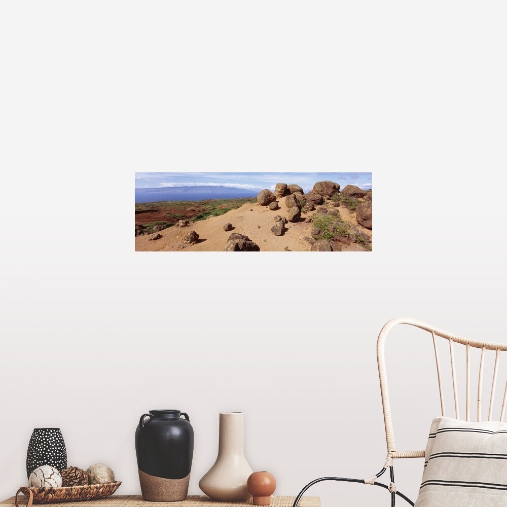 "Hawaii, Lanai, Garden of the Gods, Rock formation and uncultivated plant on the mountain" Poster Print