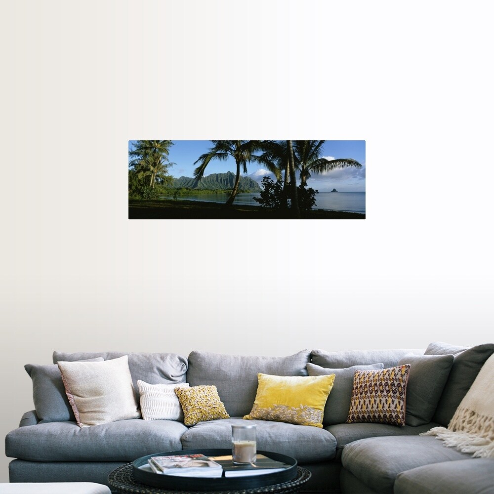 "Palm trees on the waterfront, Kaneohe Bay, Oahu, Hawaii" Poster Print