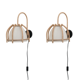 6-Rattan Wall Sconce with Cotton Shade and Inline Switch