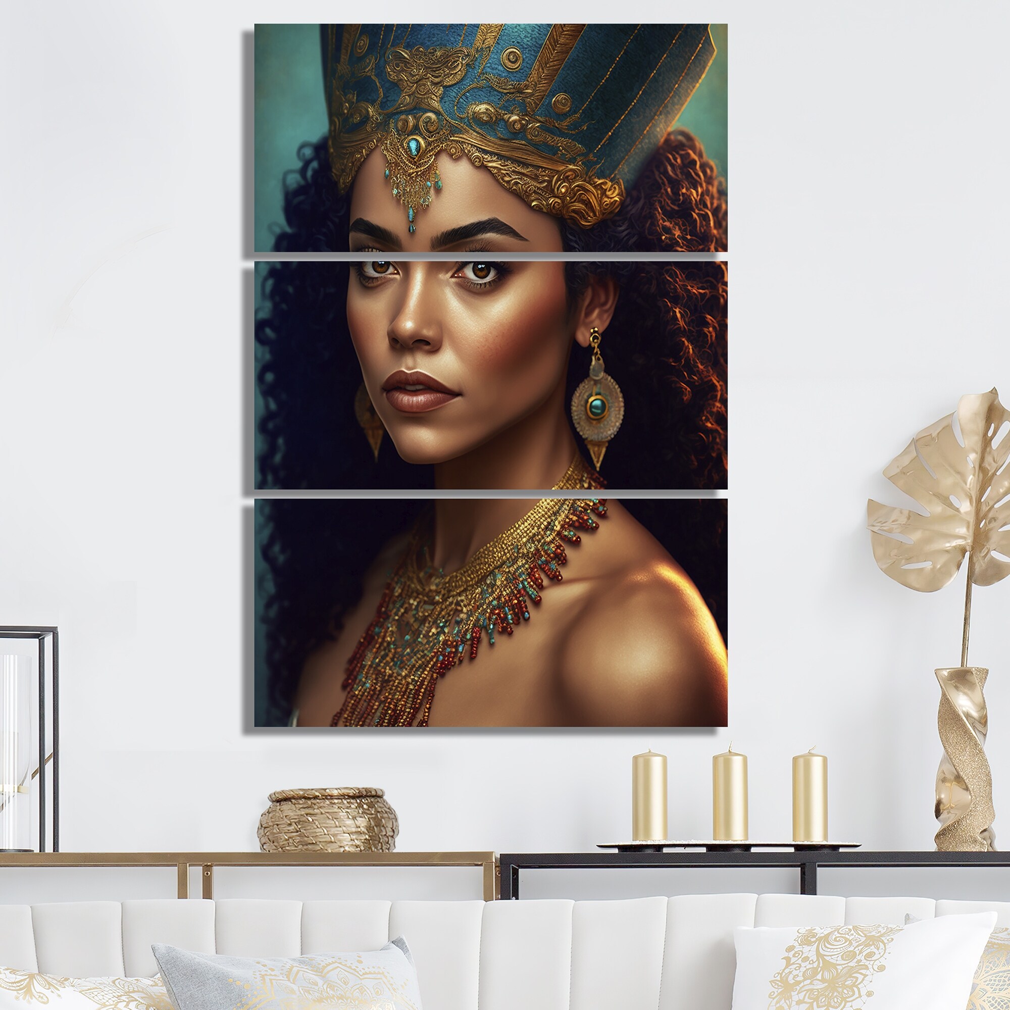 Designart "Bohemian Woman With Traditional Headdress II" Boho Woman Canvas Art Print - 3 Panels
