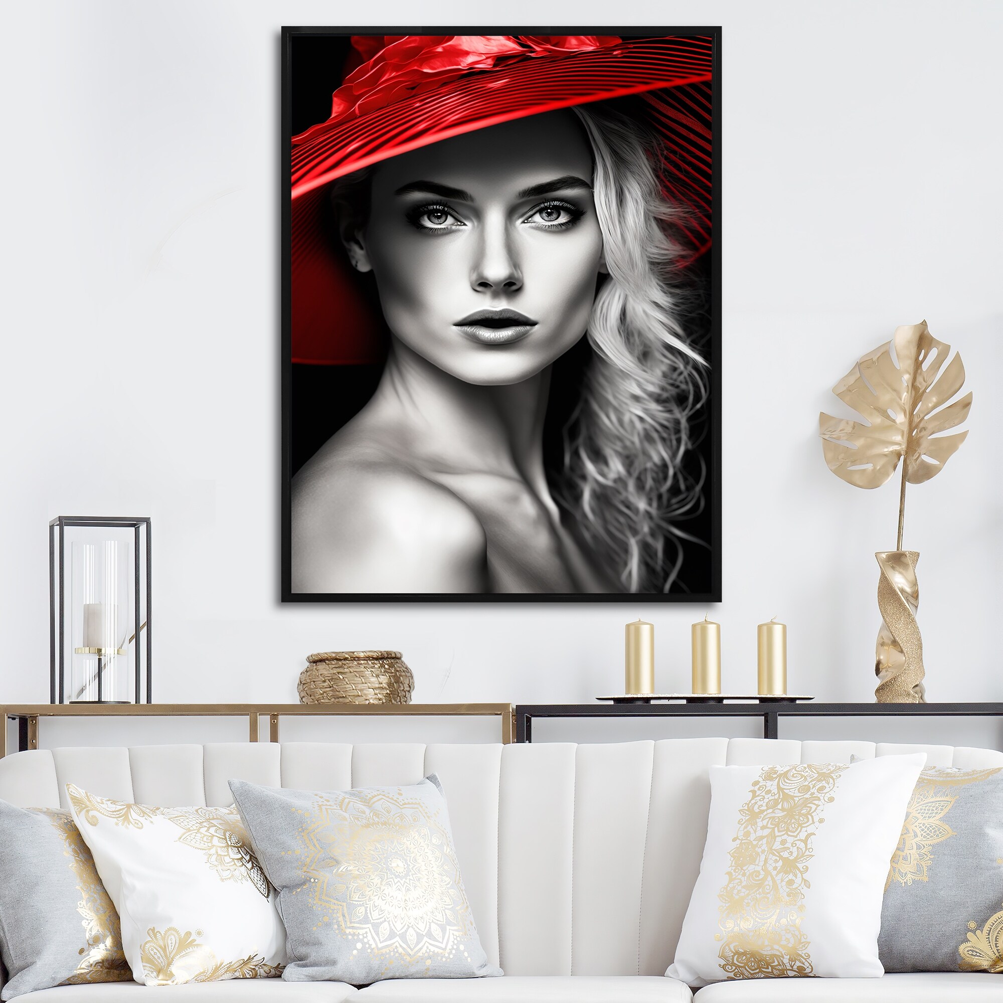 Designart "Vintage Elegant Headdress III" Fashion Woman Framed Canvas Wall Art Print