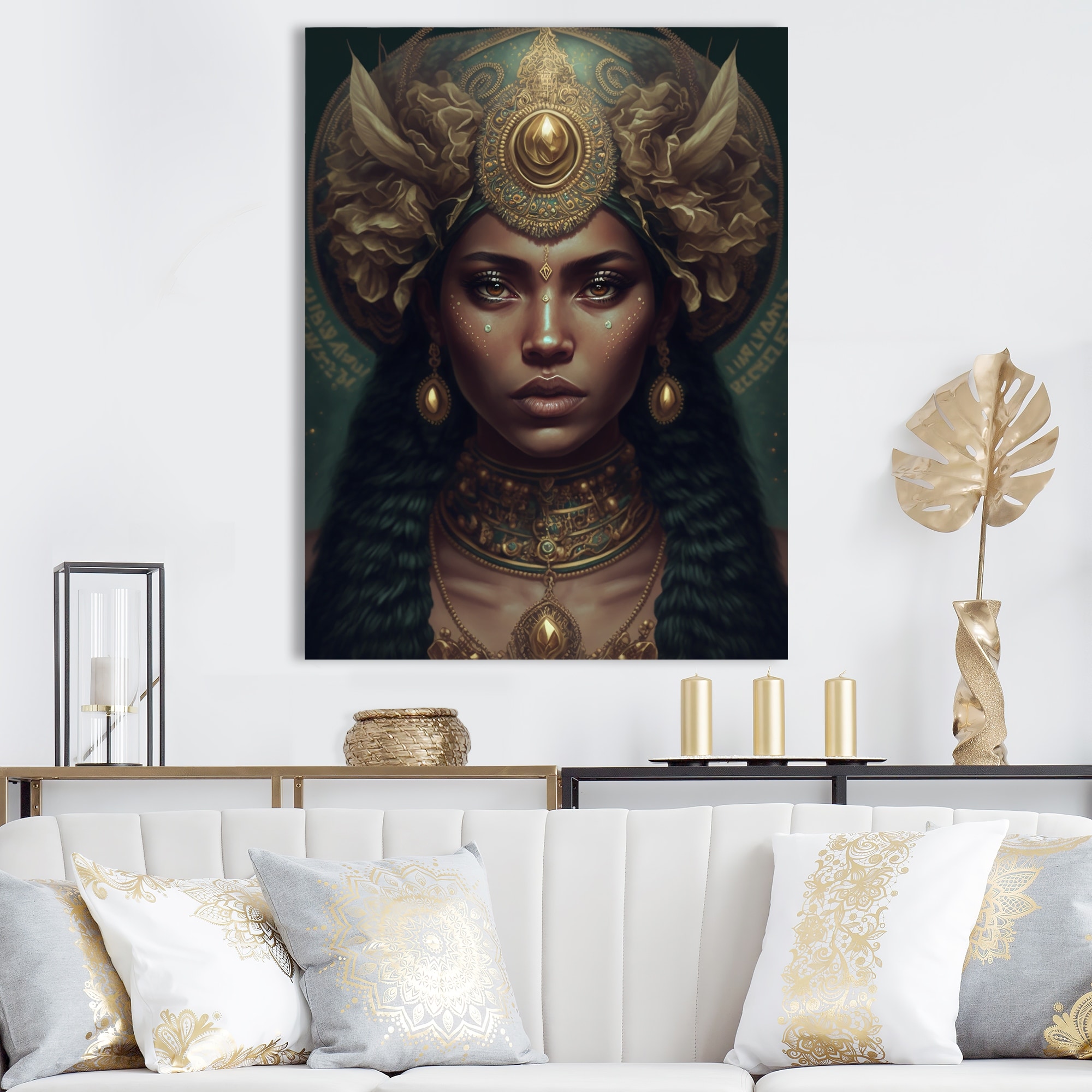 Designart "Bohemian Woman Traditional Headdress Vintage Gold VI" Boho Woman Canvas Wall Art