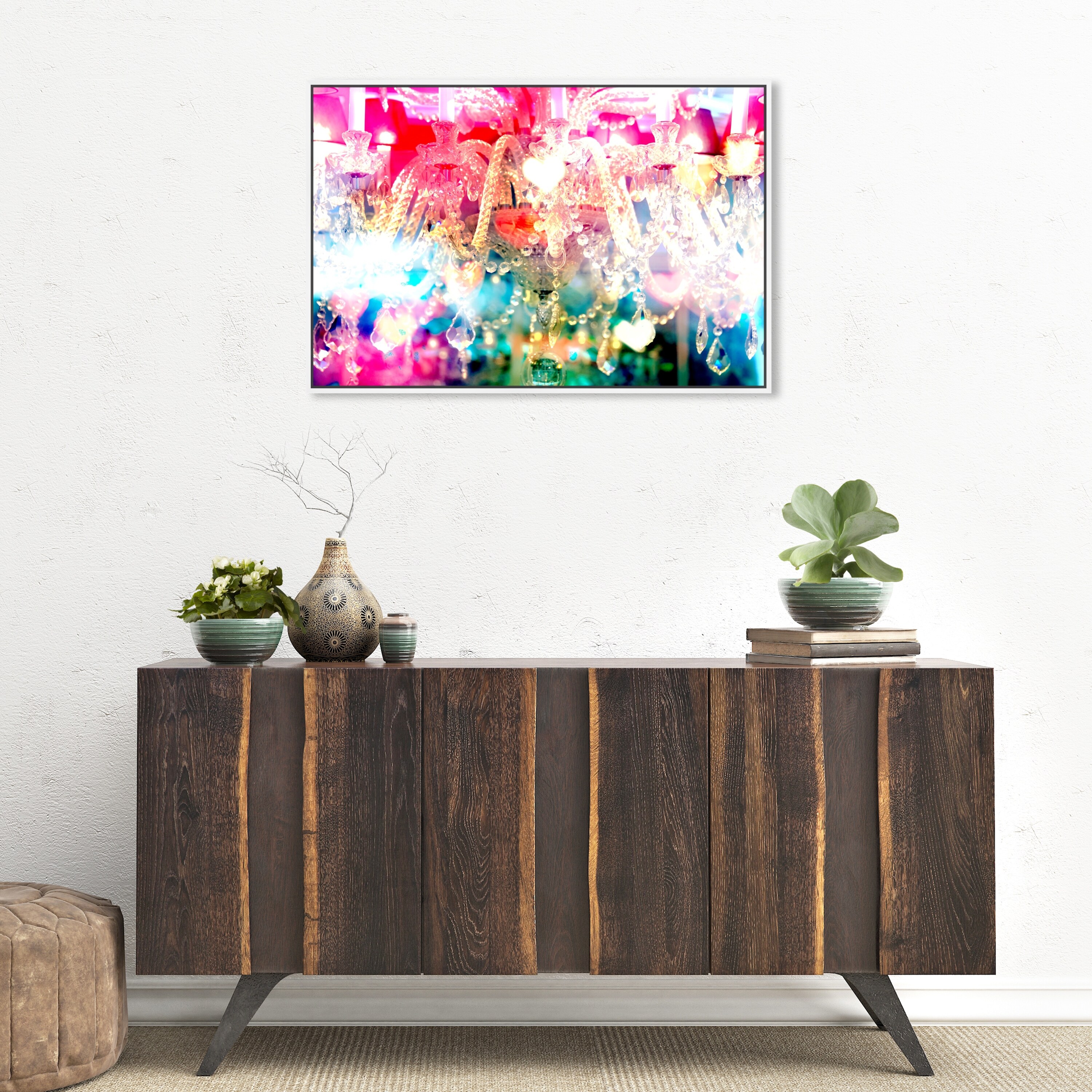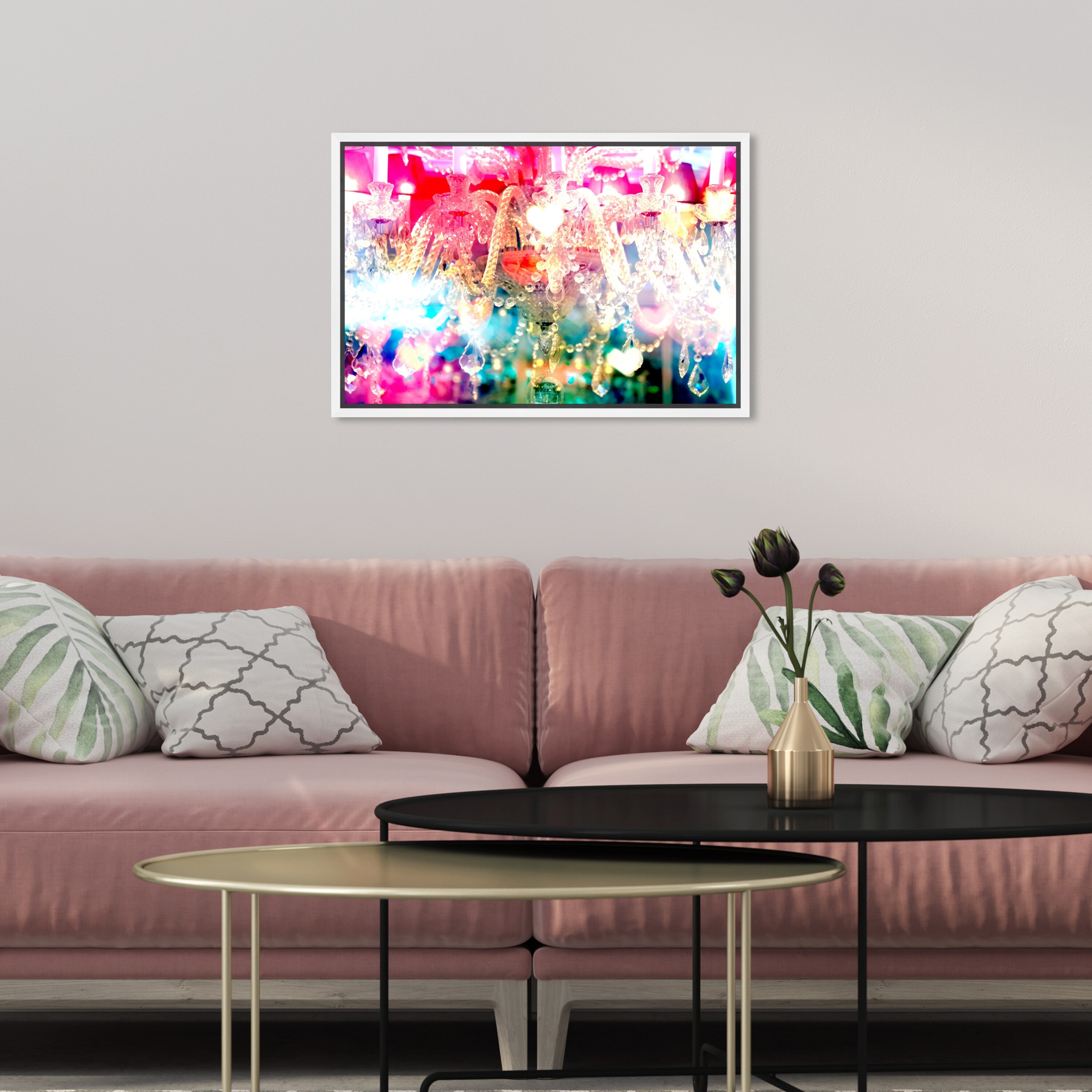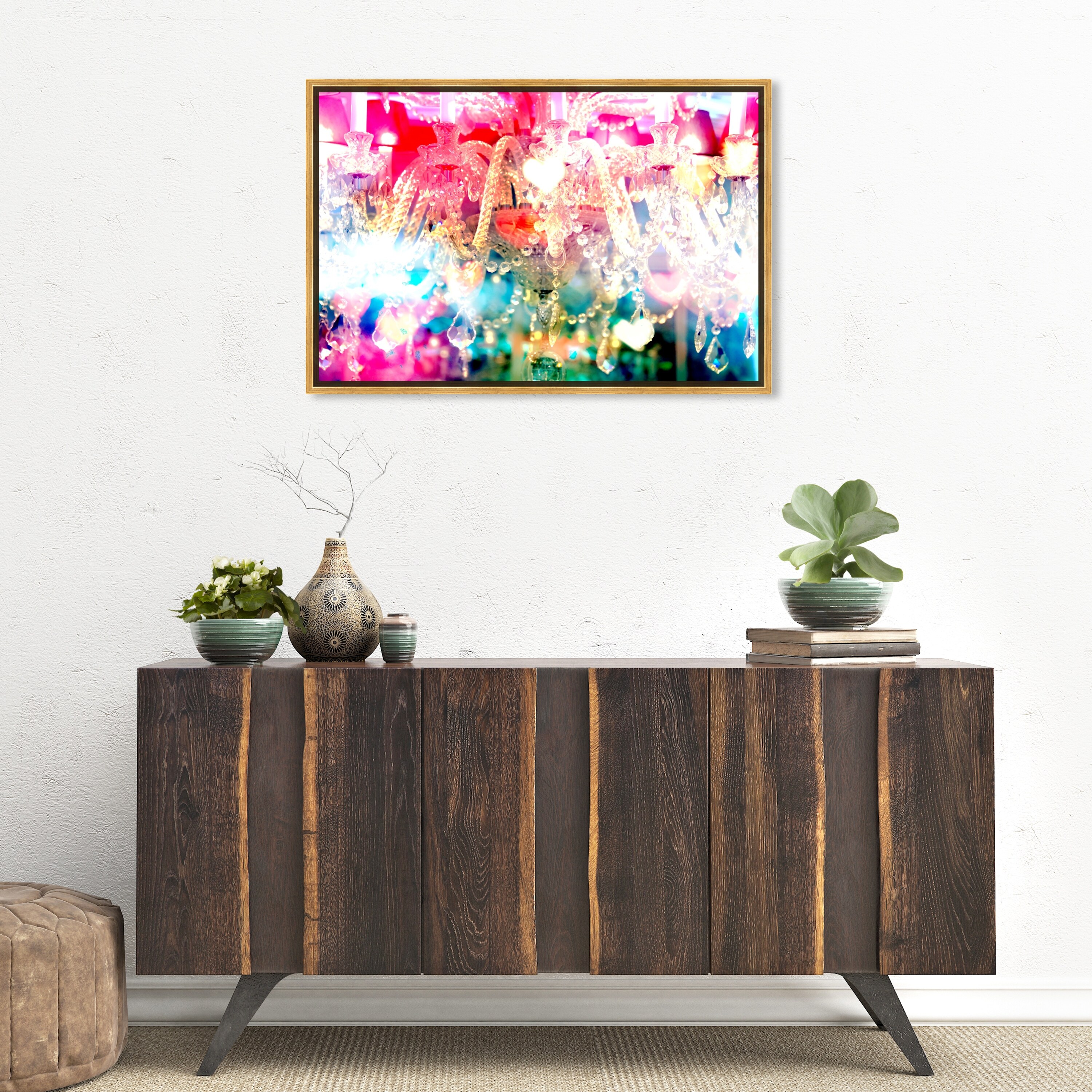 Oliver Gal 'A Versailles Hipster' Fashion and Glam Wall Art Framed Canvas Print Chandeliers - Pink, Green