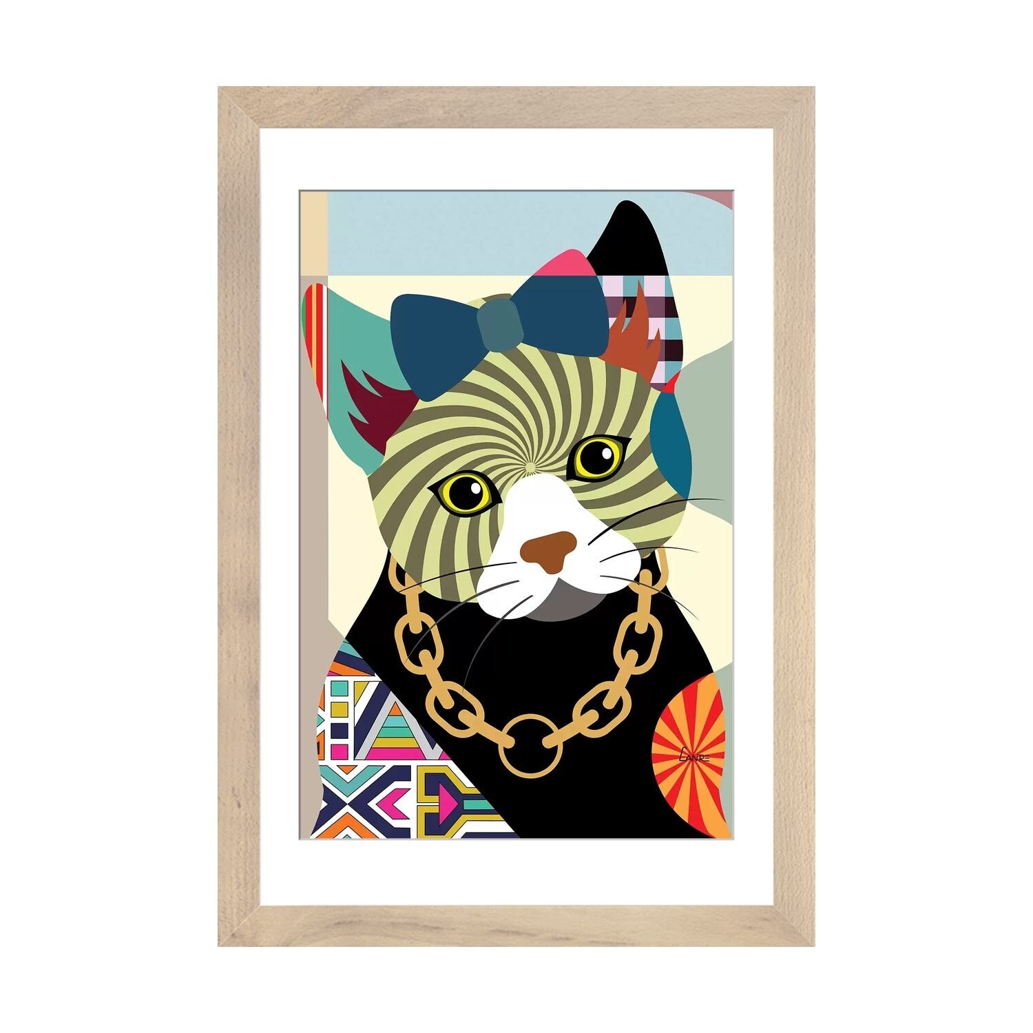Designart "Cute Hipster Cate With Sunglases" Children's Art Framed Wall Decor