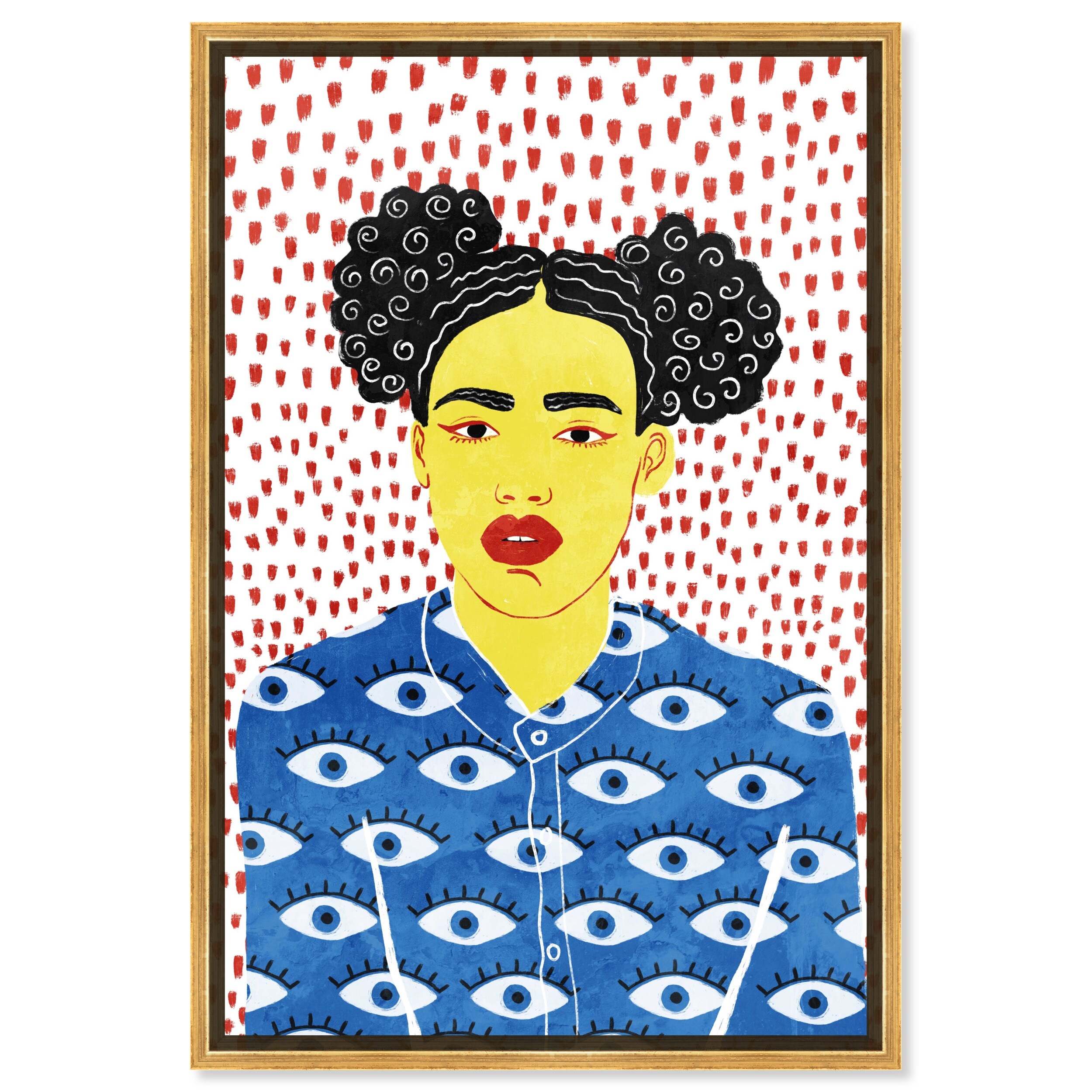 "Sophia and her eyes", Hipster Eyes Woman Modern White Framed Canvas Wall Art Print for Bedroom