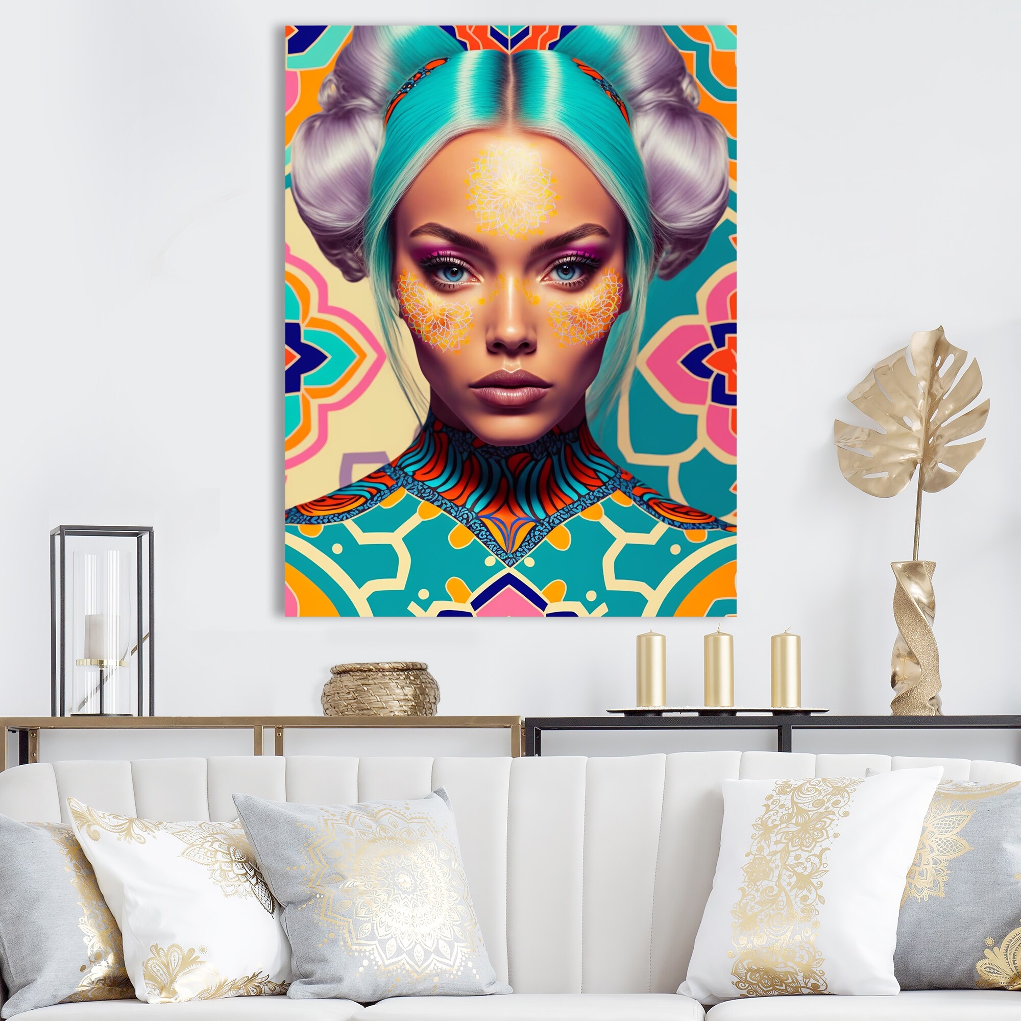 Designart "Retrofuturistic Contemporary Hipsters VI" Woman Pop Art Wall Art Prints
