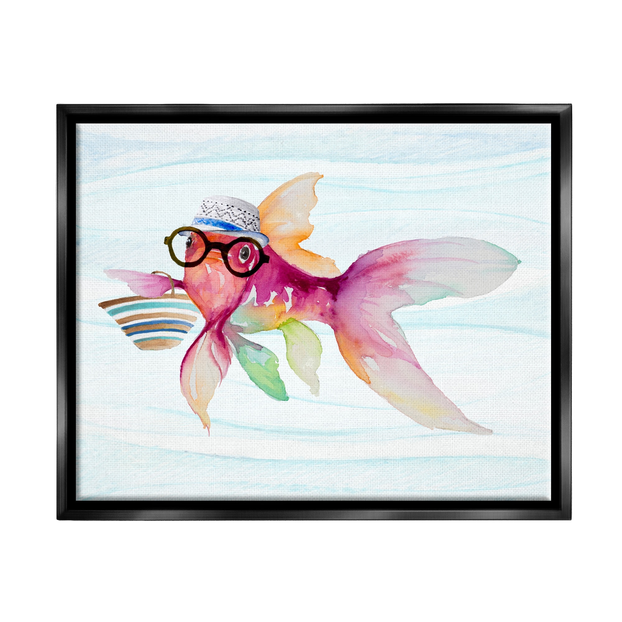 Stupell Industries Hipster Fish Funny Sea Life Framed Floater Canvas Wall Art by Lanie Loreth