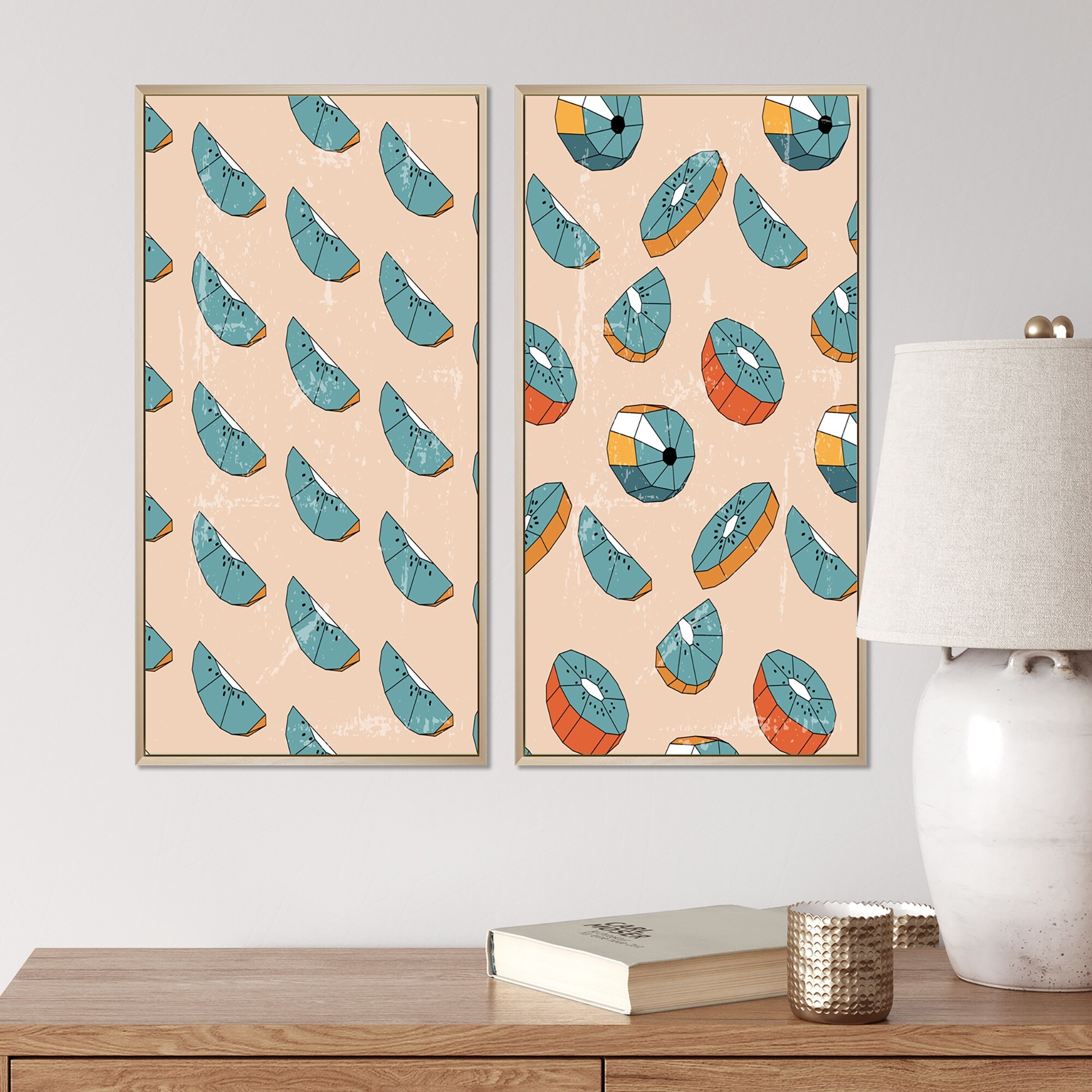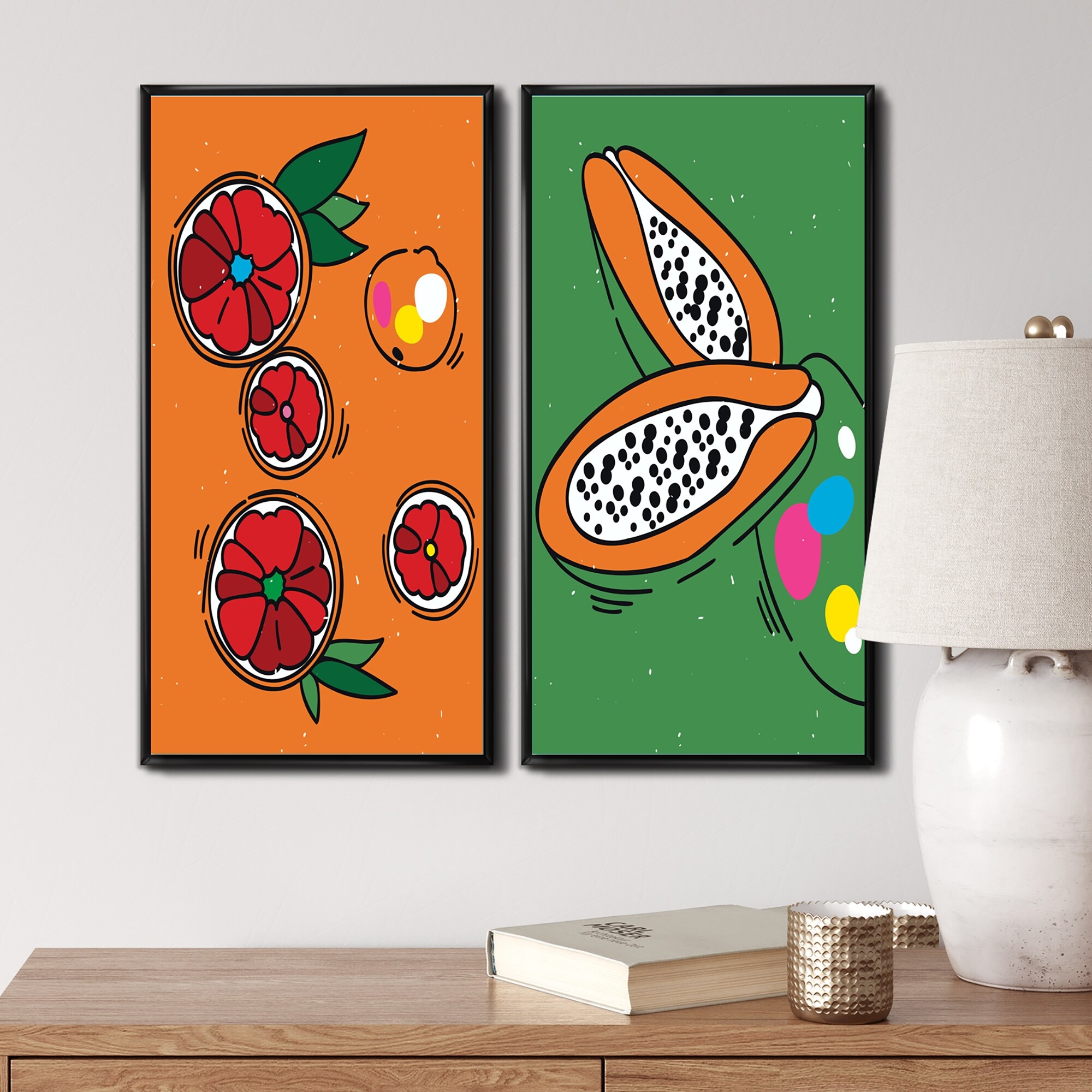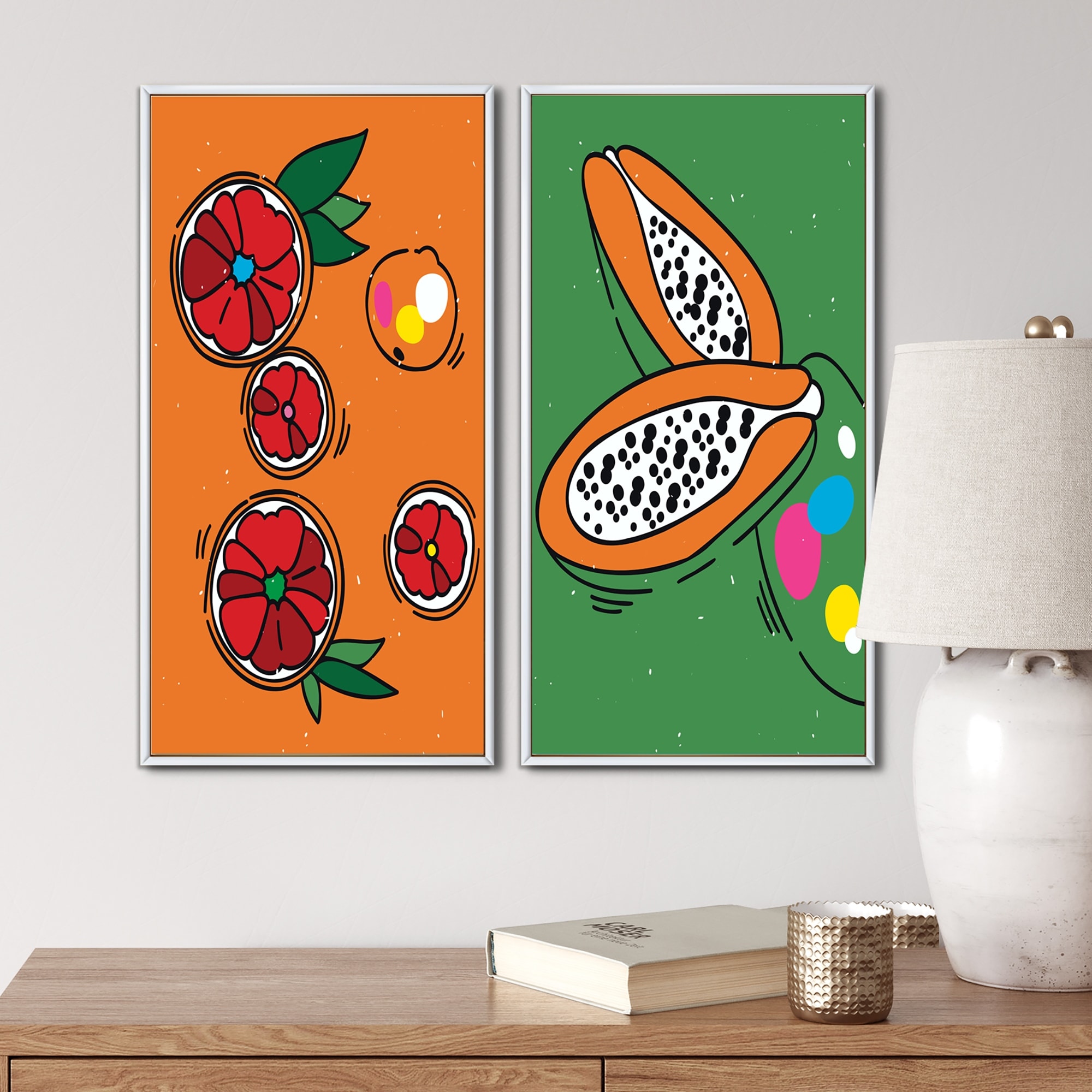 Designart "Organic Vintage Hipster Fruits IV" Cottage Framed Art Set of 2 Pieces