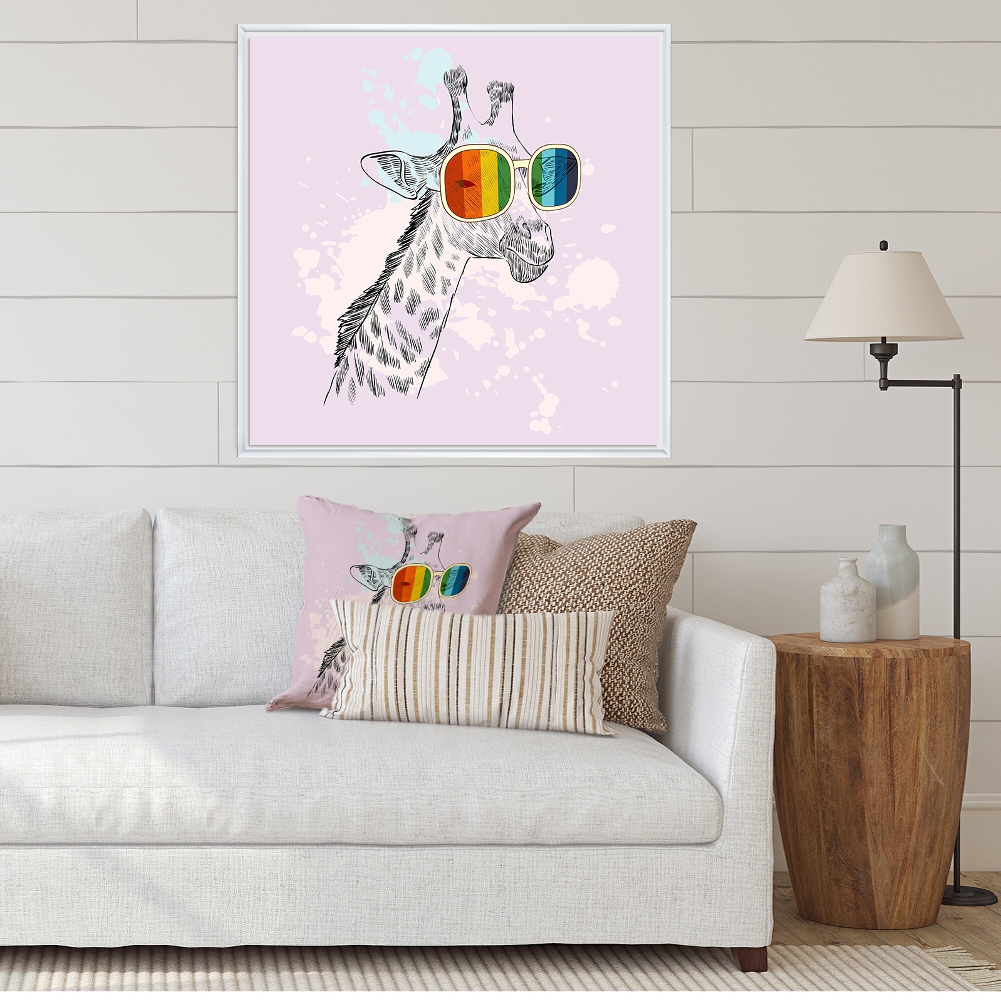 Designart "Cartoon Hipster Giraffe" Traditional Framed Children's Canvas Wall Art