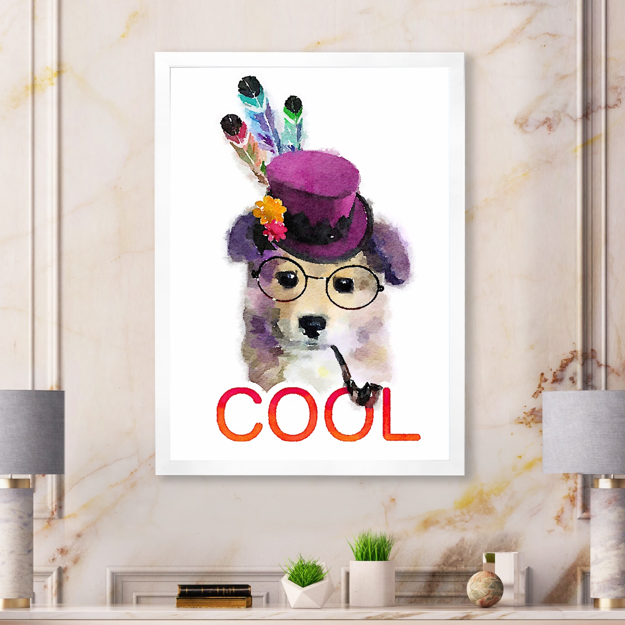 Designart "Hipster Golden Retriever Dog" Children's Art Framed Wall Art