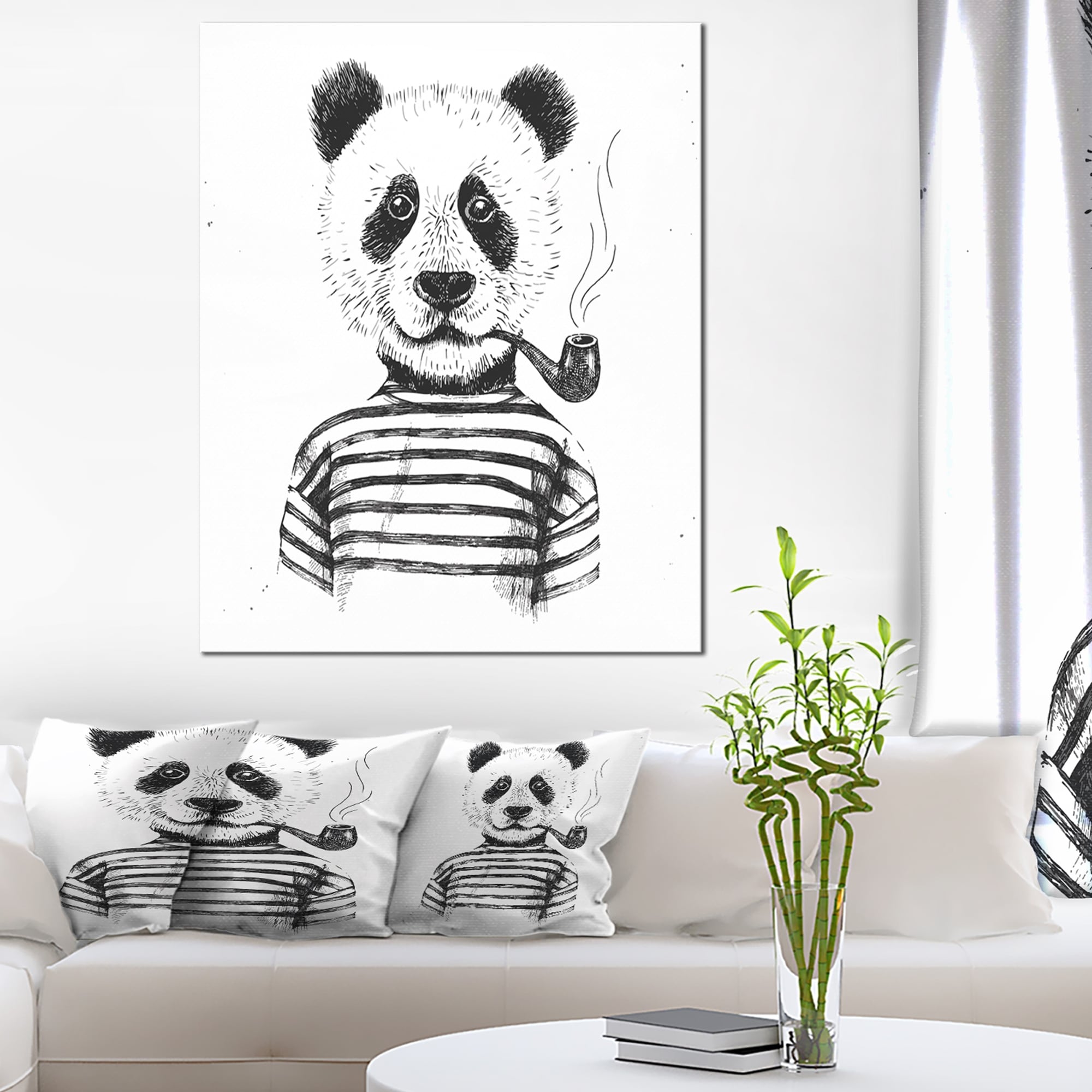 Designart "Hipster Pandas Black and White" Animal Canvas Art Print