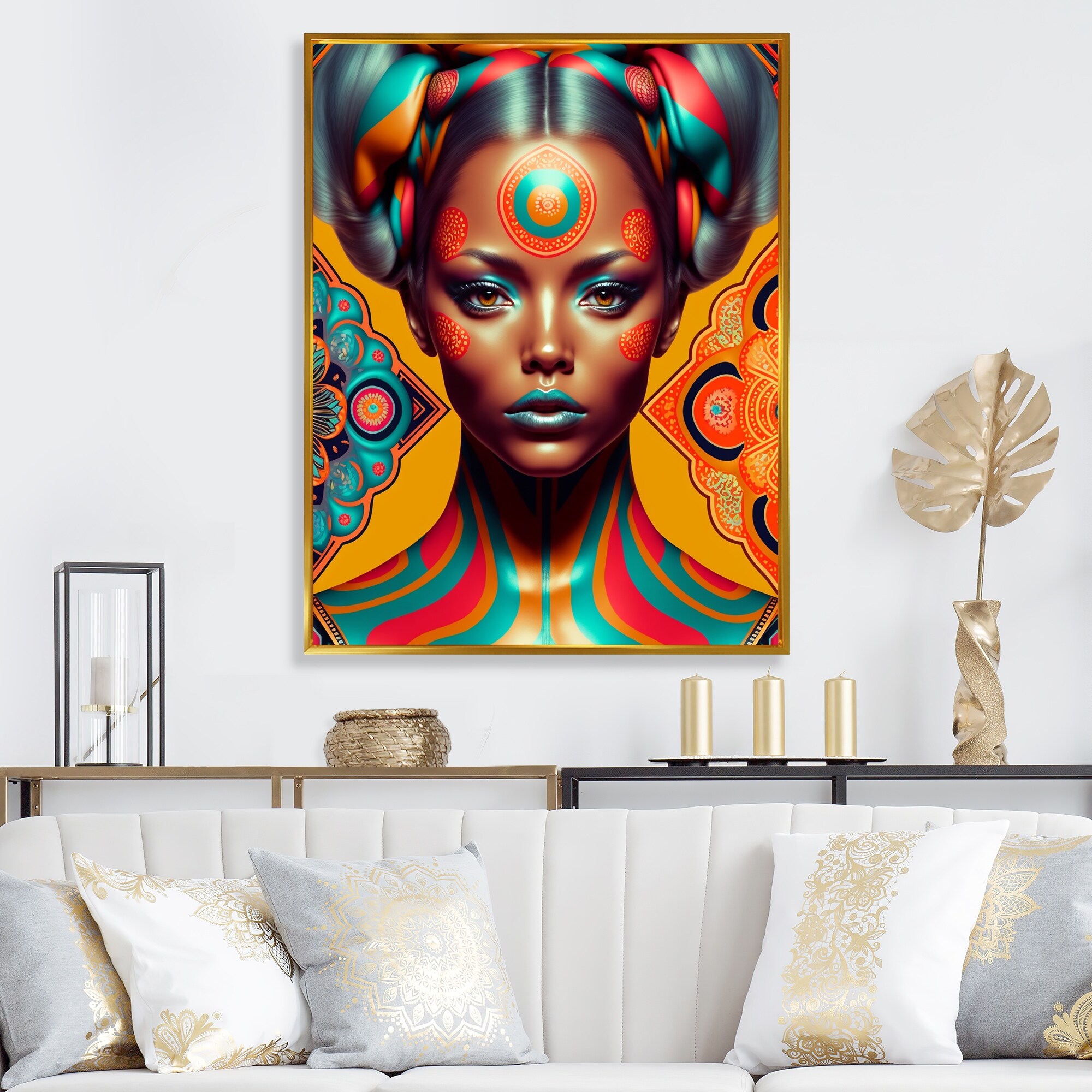Designart "Retrofuturistic Contemporary Hipsters V" Woman Pop Art Framed Canvas Art Print