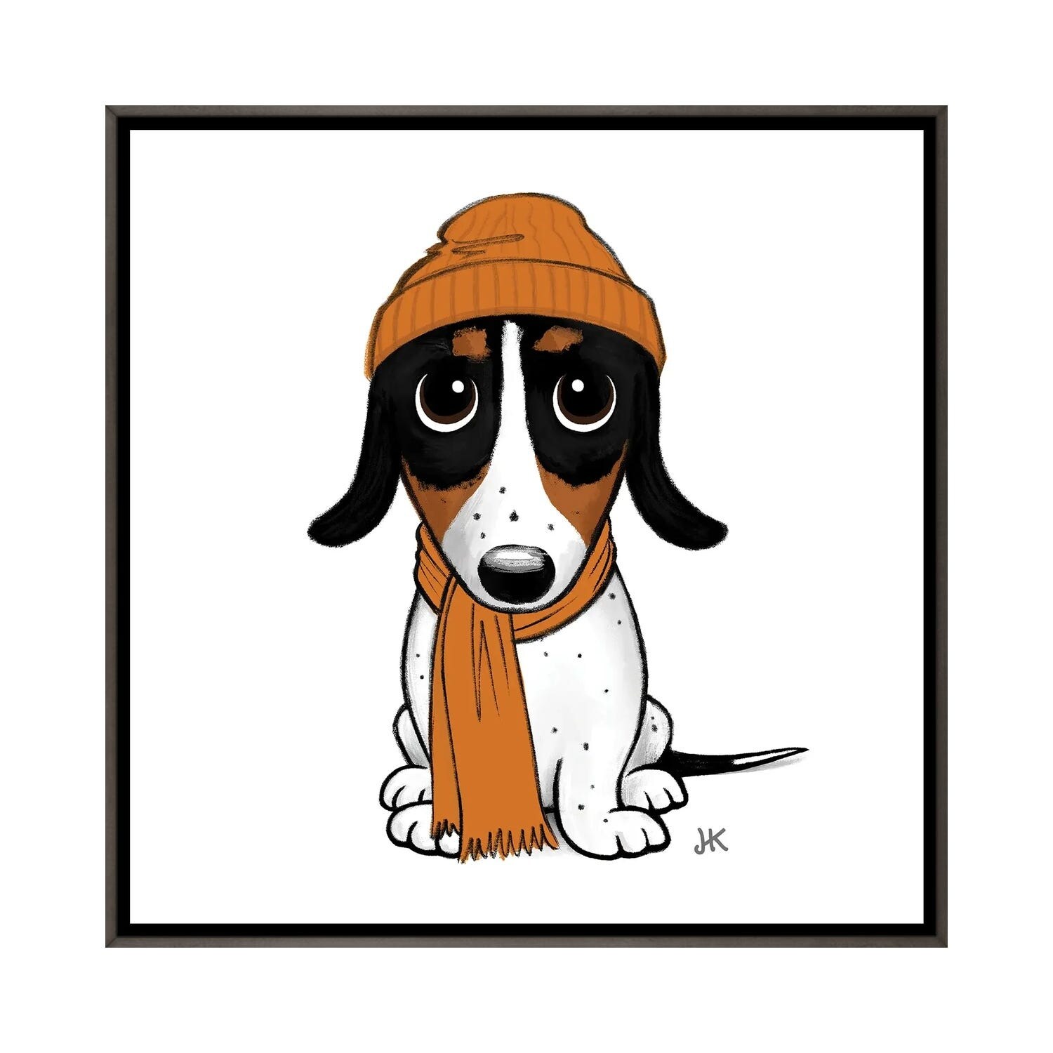 iCanvas "Hipster Dog - Black And Tan Piebald Dachshund" by Jenn Kay Framed
