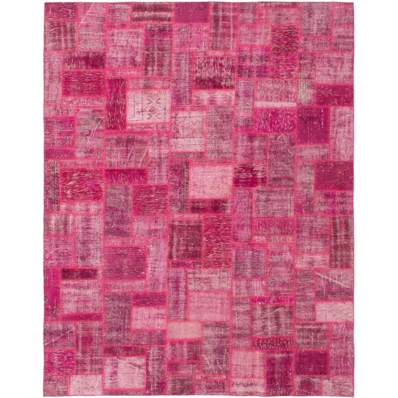 ECARPETGALLERY Hand-knotted Color Transition Patchwork Pink Wool Rug - 6'11 x 9'9