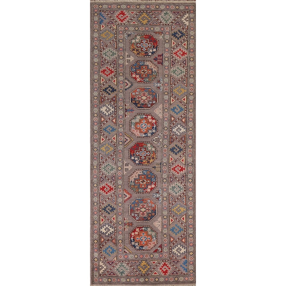Geometric Kazak Oriental Hallway Wool Runner Rug Hand-knotted Carpet - 2'7" x 8'2"