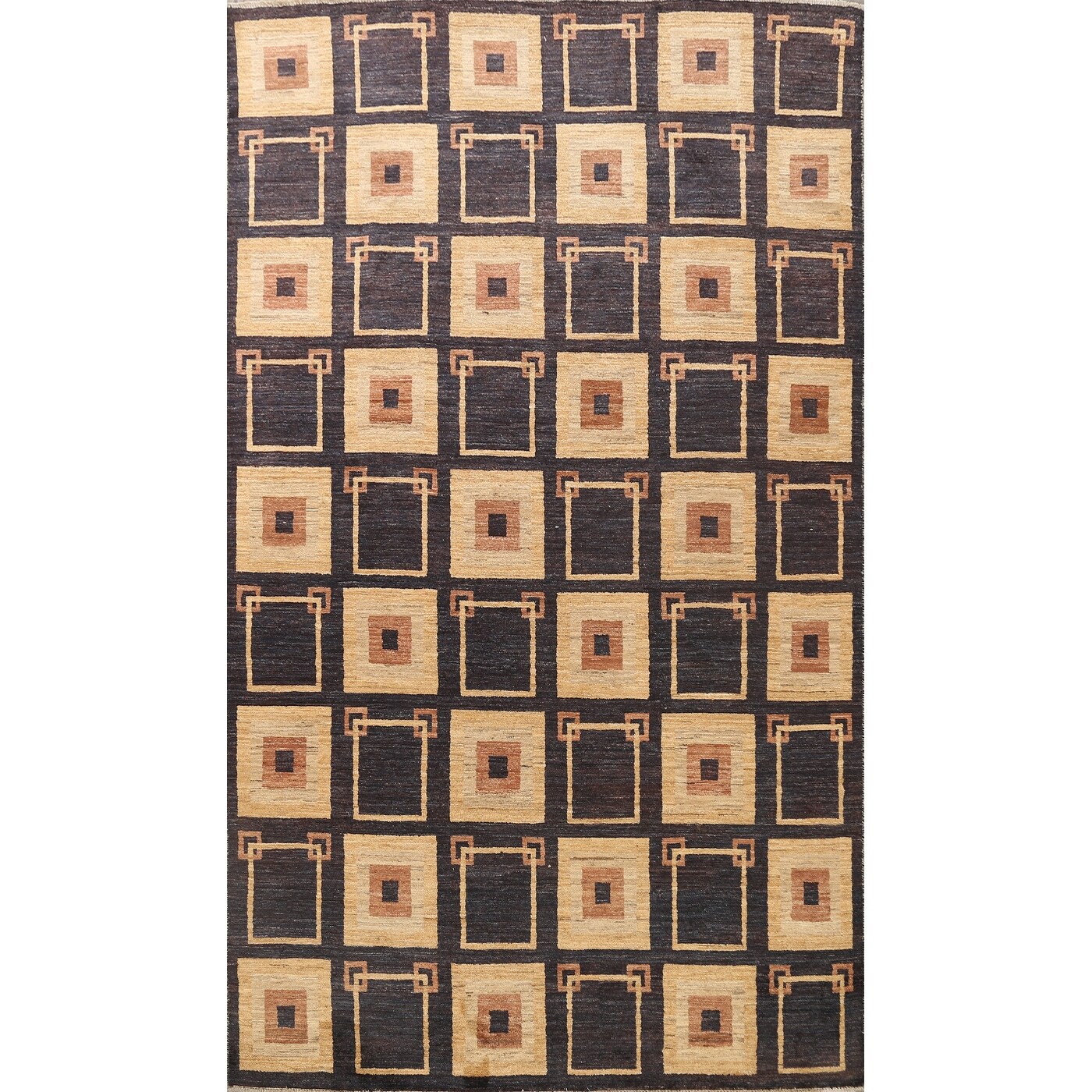 Machine Woven Crossweave Polyester Area Rug Oriental Brown Gray M00106