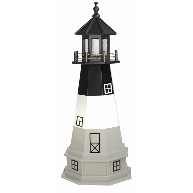Cape Henry Dark Gray and White Hybrid Poly and Wood Lighthouse with Base