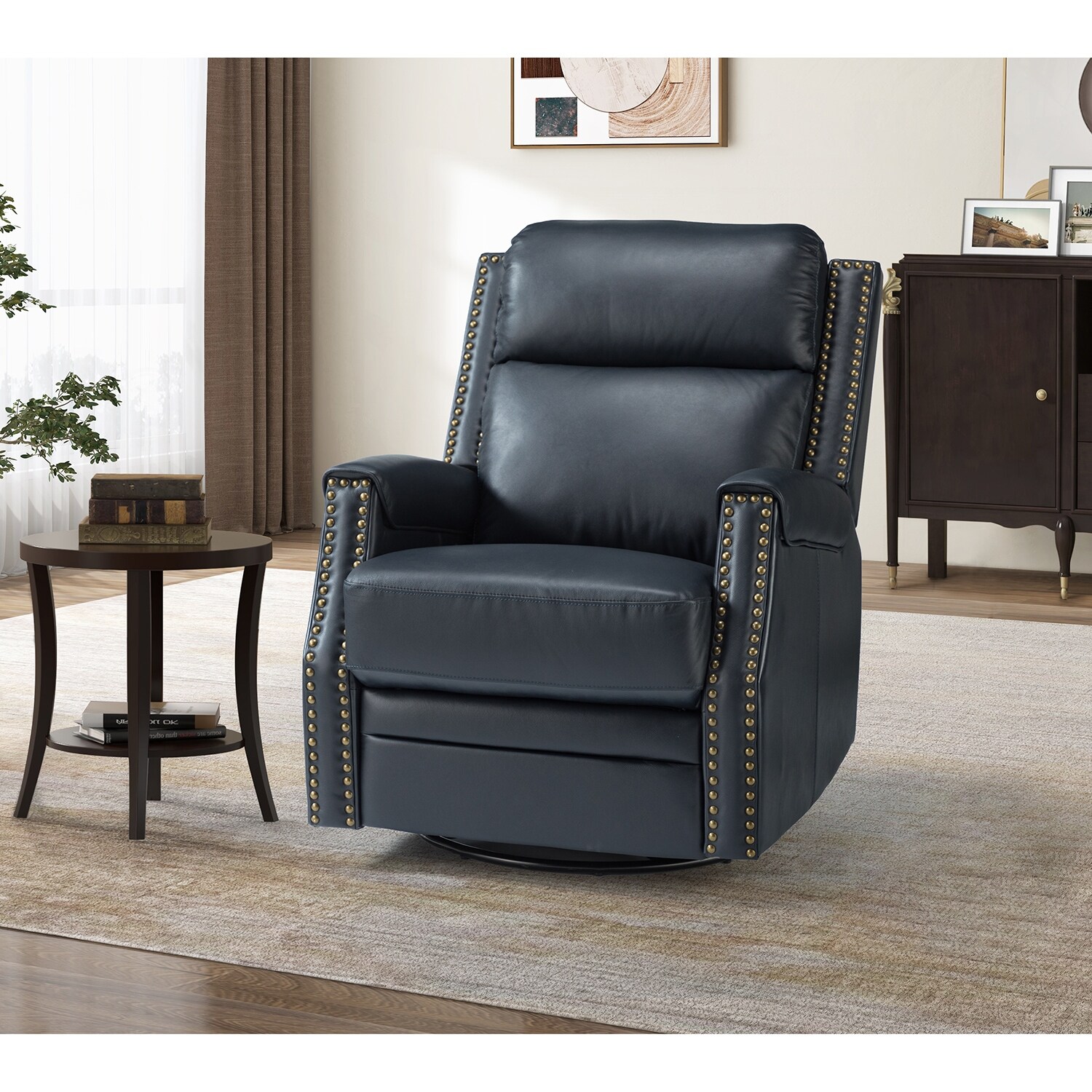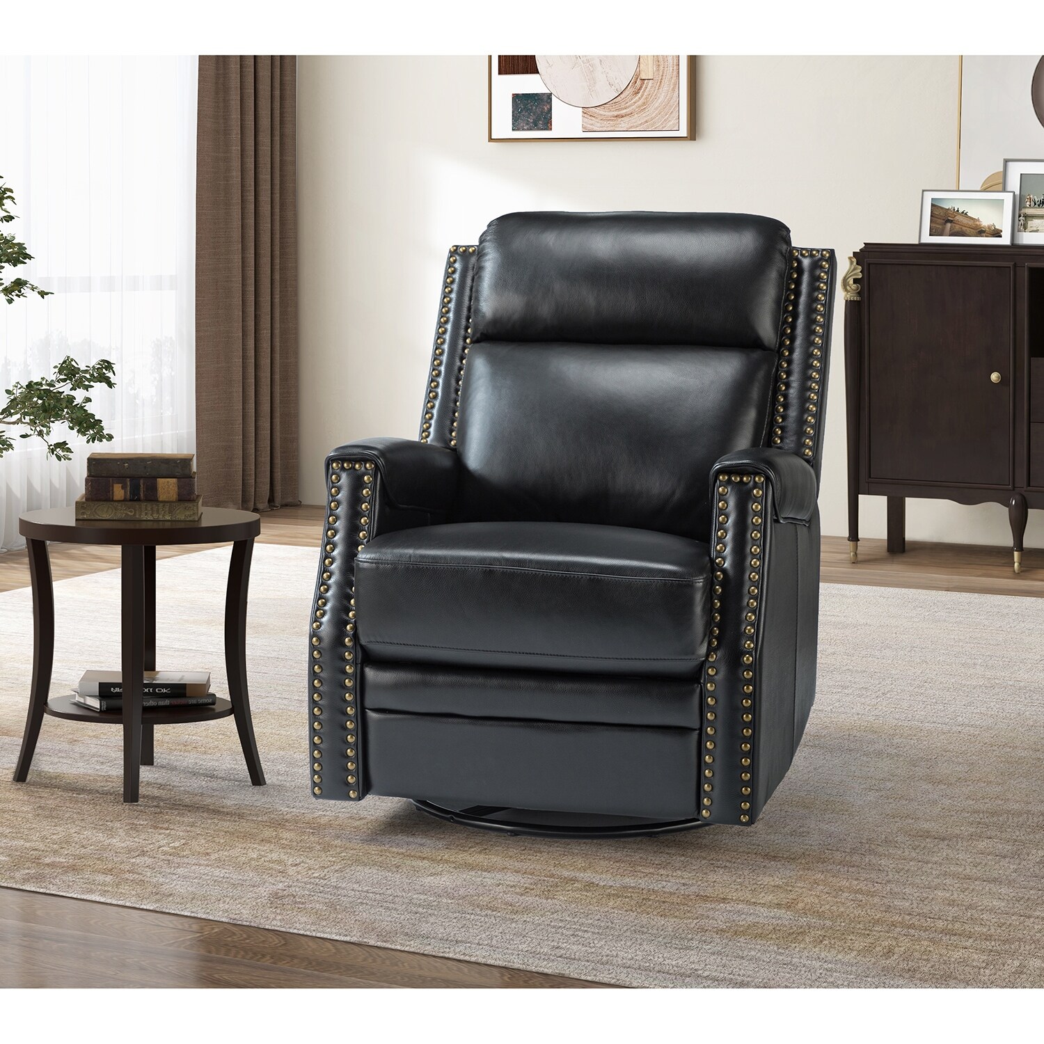Renato Traditional Genuine Leather Nailhead Power Swivel Recliner with Metal Base by HULALA HOME