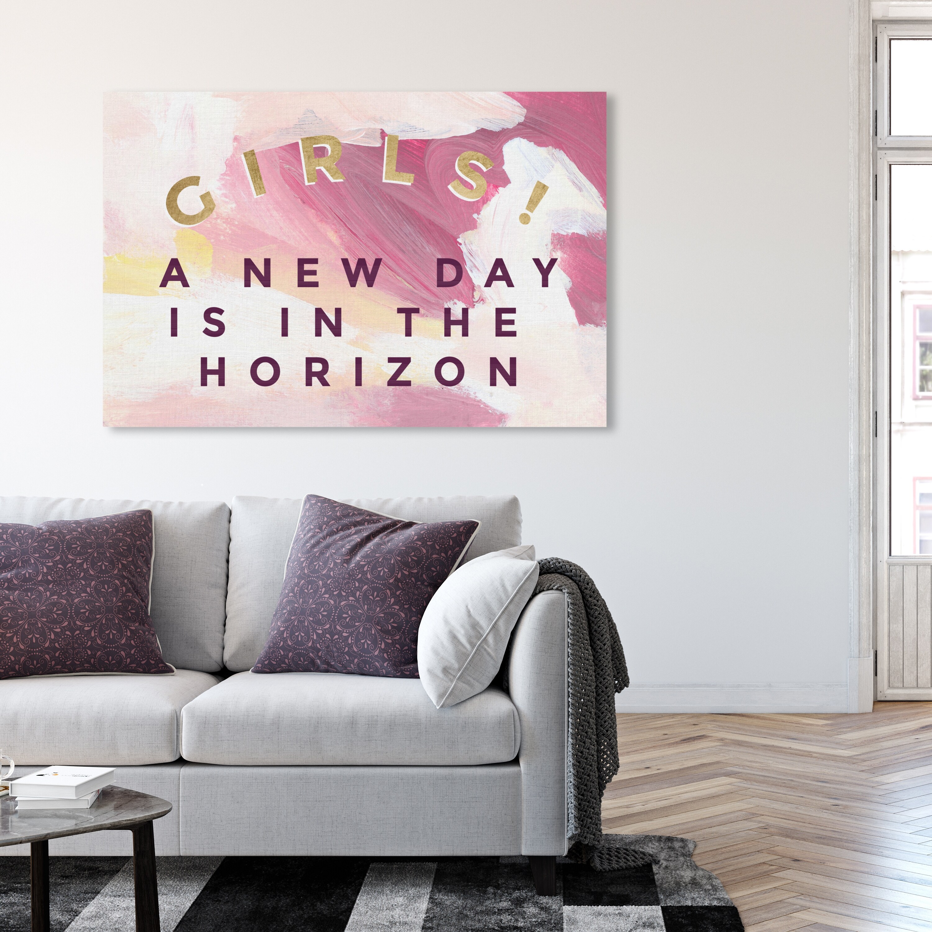 Oliver Gal 'A New Day in the Horizon' Typography and Quotes Wall Art Canvas Print Empowered Women Quotes - Gold, Pink