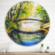 Designart 'Bridge Over Troubled Water in Forest Park' Lake House Metal Circle Wall Art