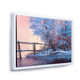 Designart "Winter Scenery With Bridge of Meandering River I" Lake House Framed Canvas Wall Art Print