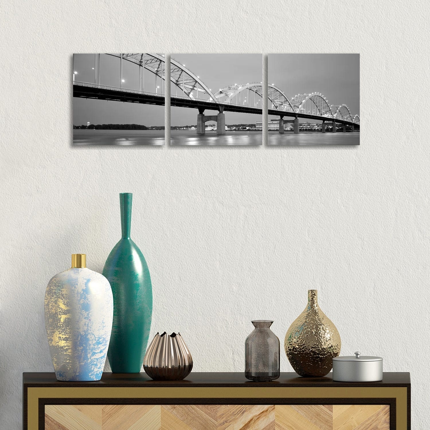 iCanvas "Bridge Over A River, Centennial Bridge, Davenport, Iowa, USA" by Panoramic Images 3-Piece Canvas Wall Art Set