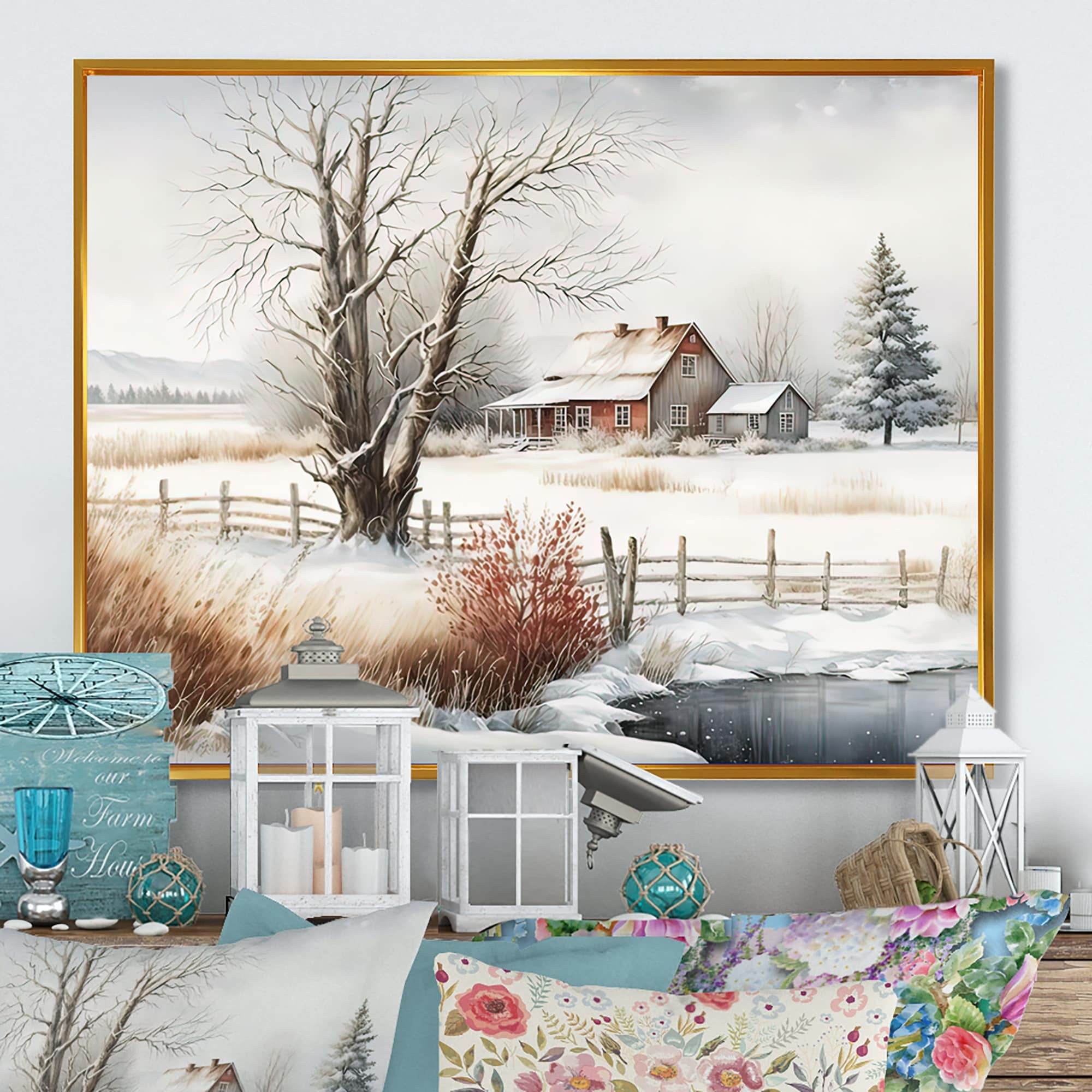 Designart "Iowa Farm in Winter" Farmhouse / Country Framed Canvas Art Print