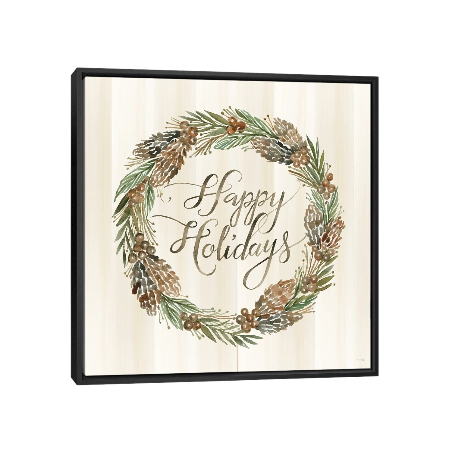 iCanvas "Sage Happy Holidays Wreath" by Cindy Jacobs Framed