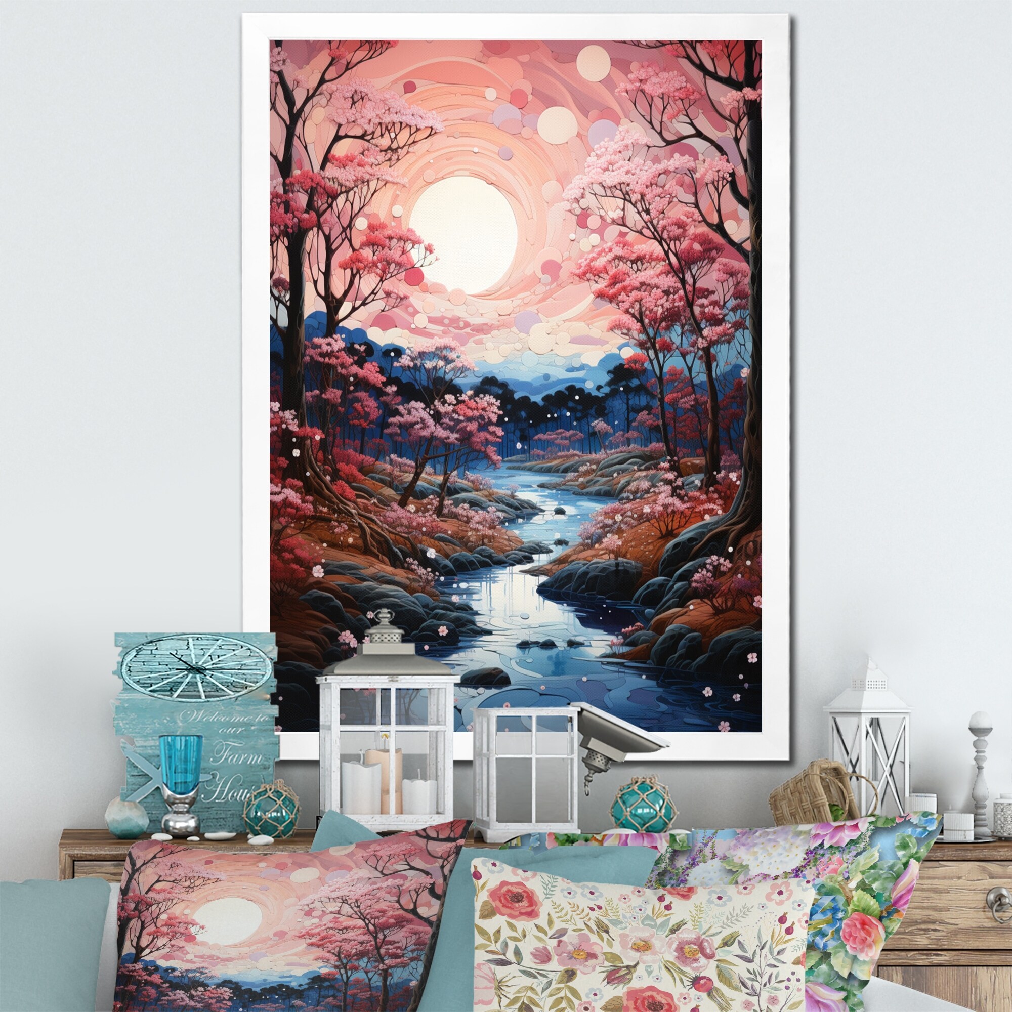 Designart "Japon Art Cherry Blossom River II" Japan Art Framed Wall Art Prints