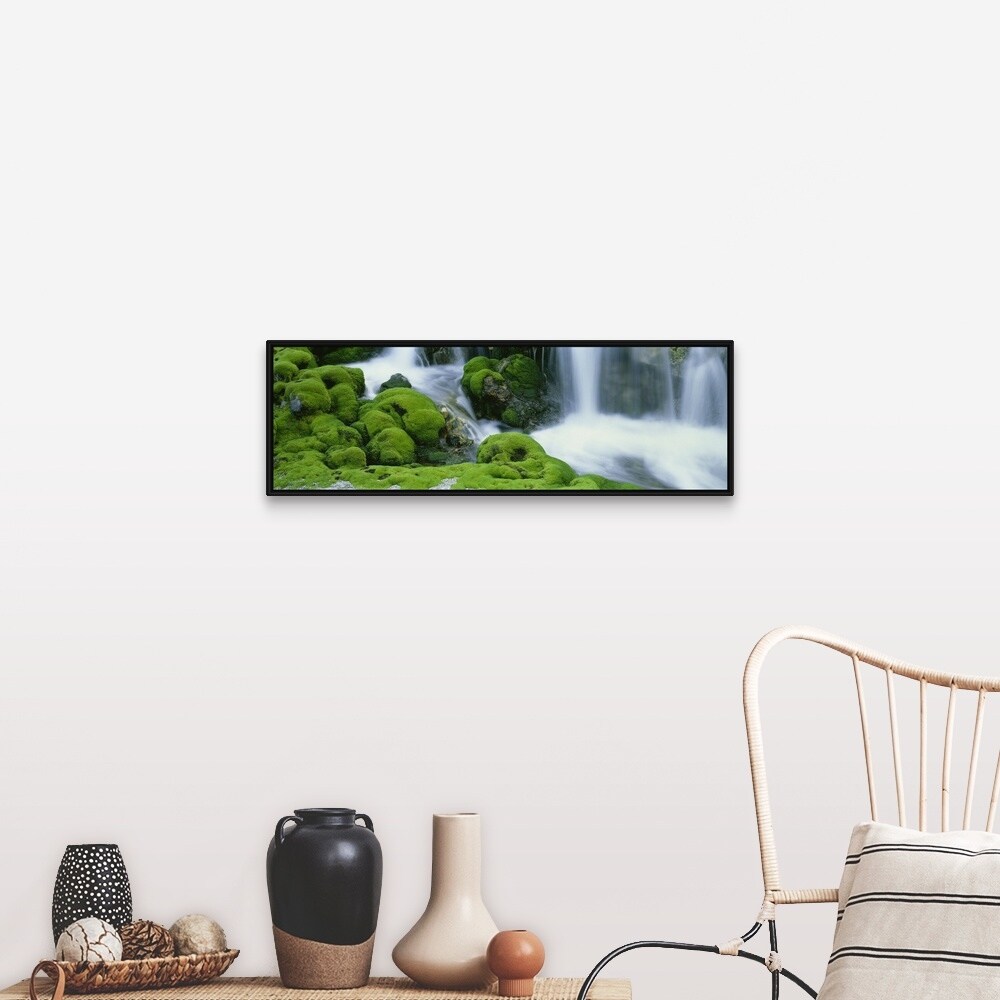 "Moss and Stream Gunma Japan" Black Float Frame Canvas Art