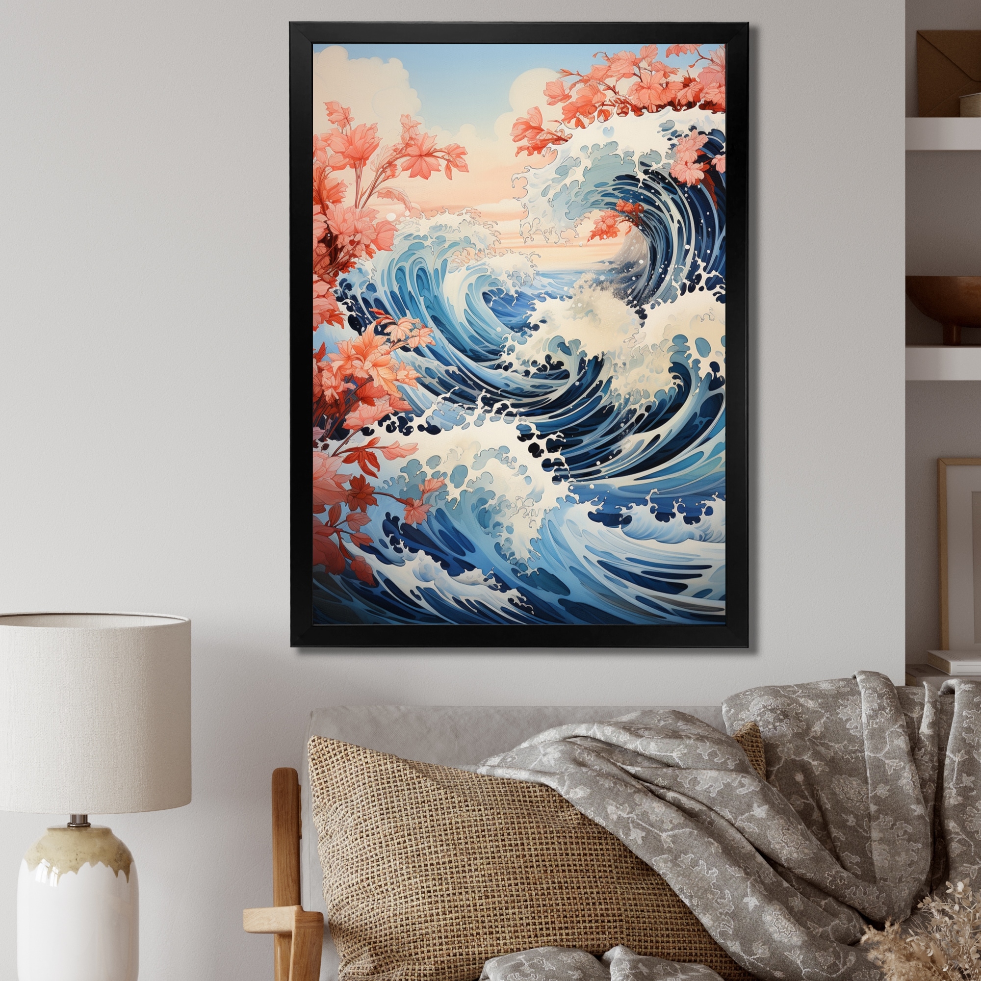 Designart "Japon Art Waves of Tranquility I" Japan Art Framed Wall Art Living Room