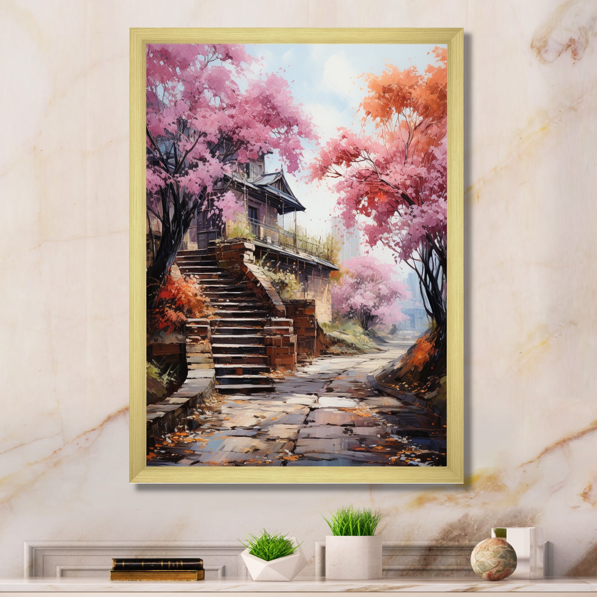 Designart "Japon Art Pink Blossoming Path" Japan Art Framed Wall Art Living Room
