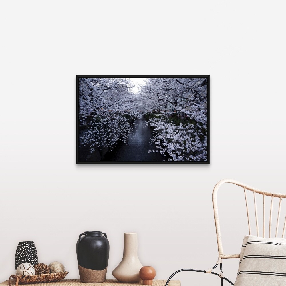 "Cherry blossoms at Meguro river, Tokyo, Japan" Black Float Frame Canvas Art