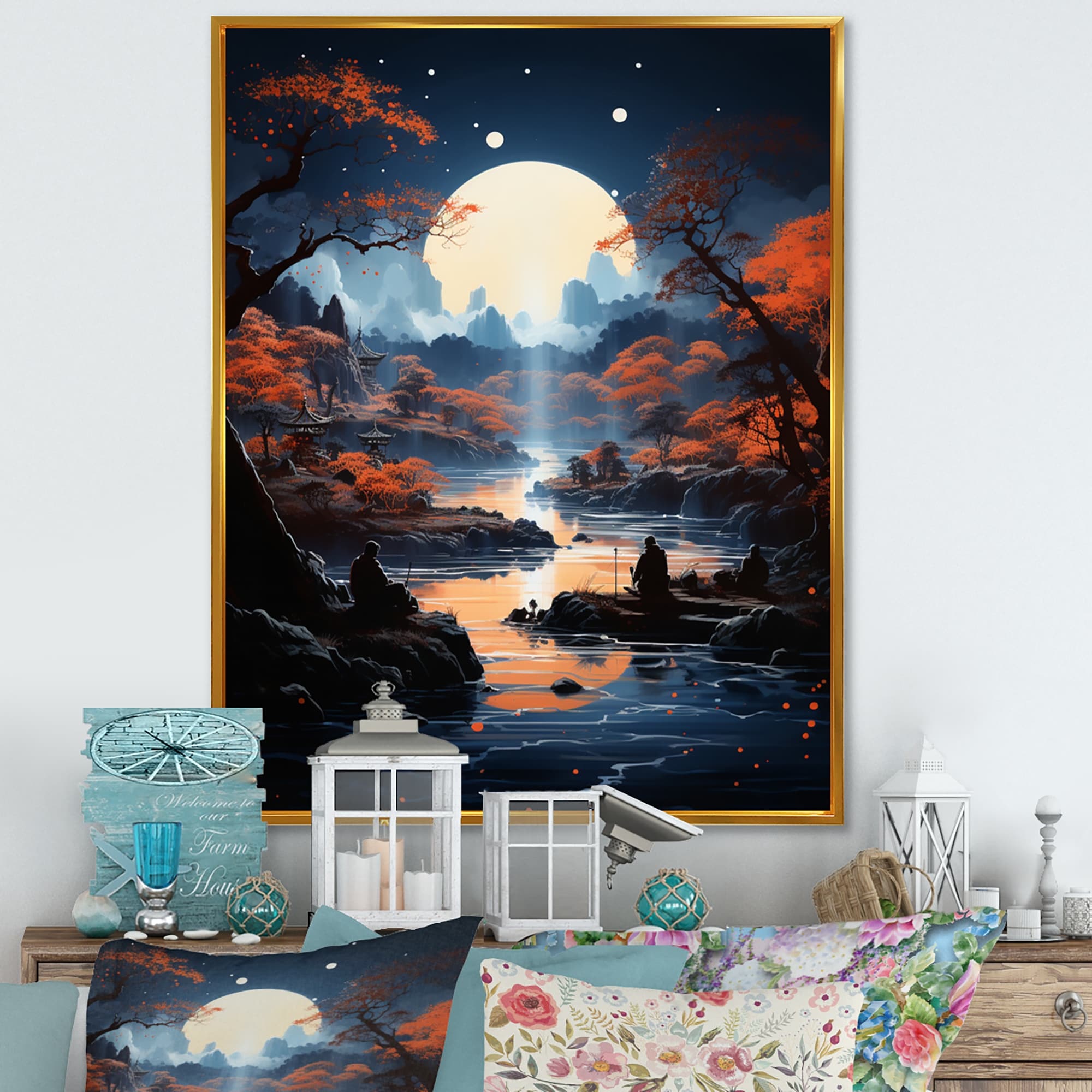 Designart "Japon Art Tsukimi Moon I" Japan Art Framed Canvas Print