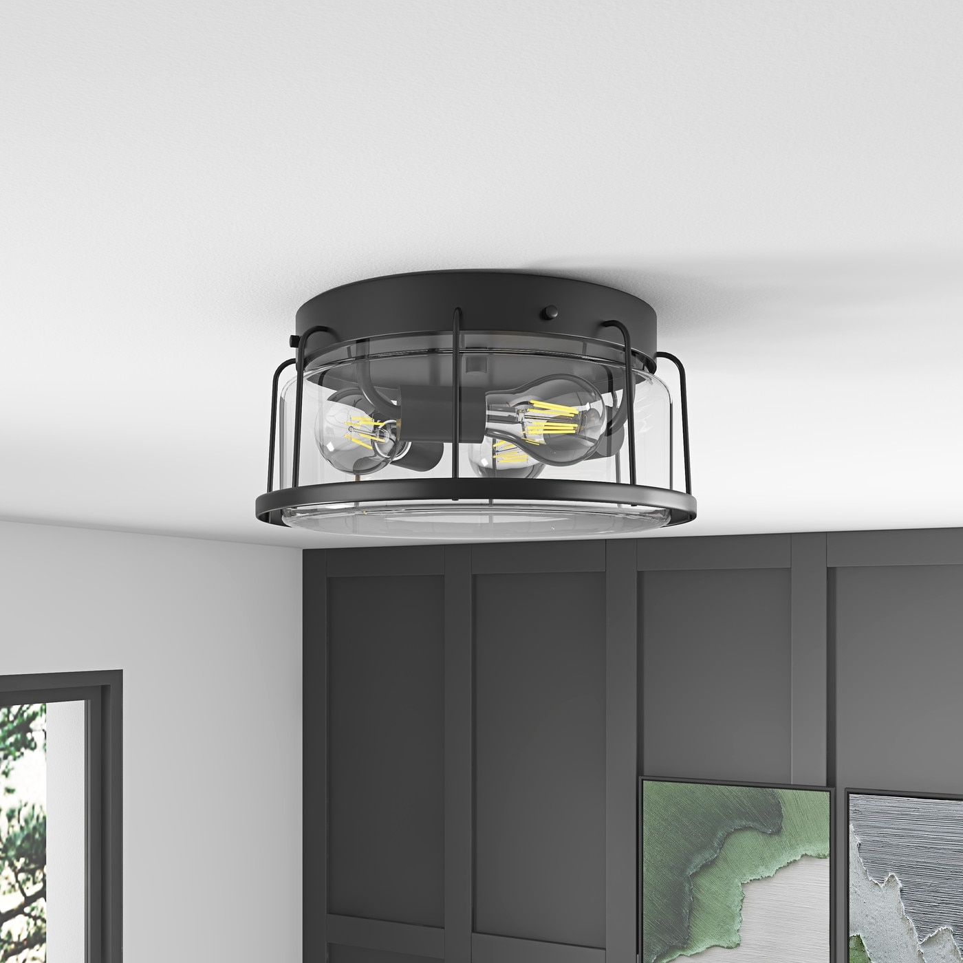 Vintage Black 2-Light Drum Shape Flush Mount Ceiling Lamp