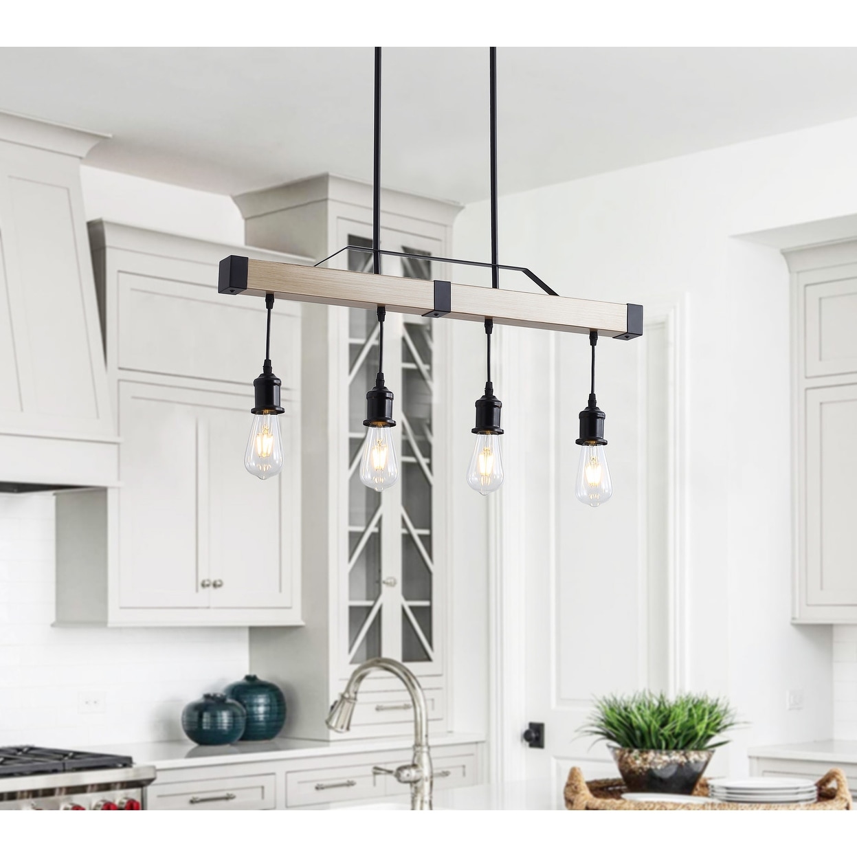 Black pendant light industrial wood accent hanging chandelier island hanging lamp