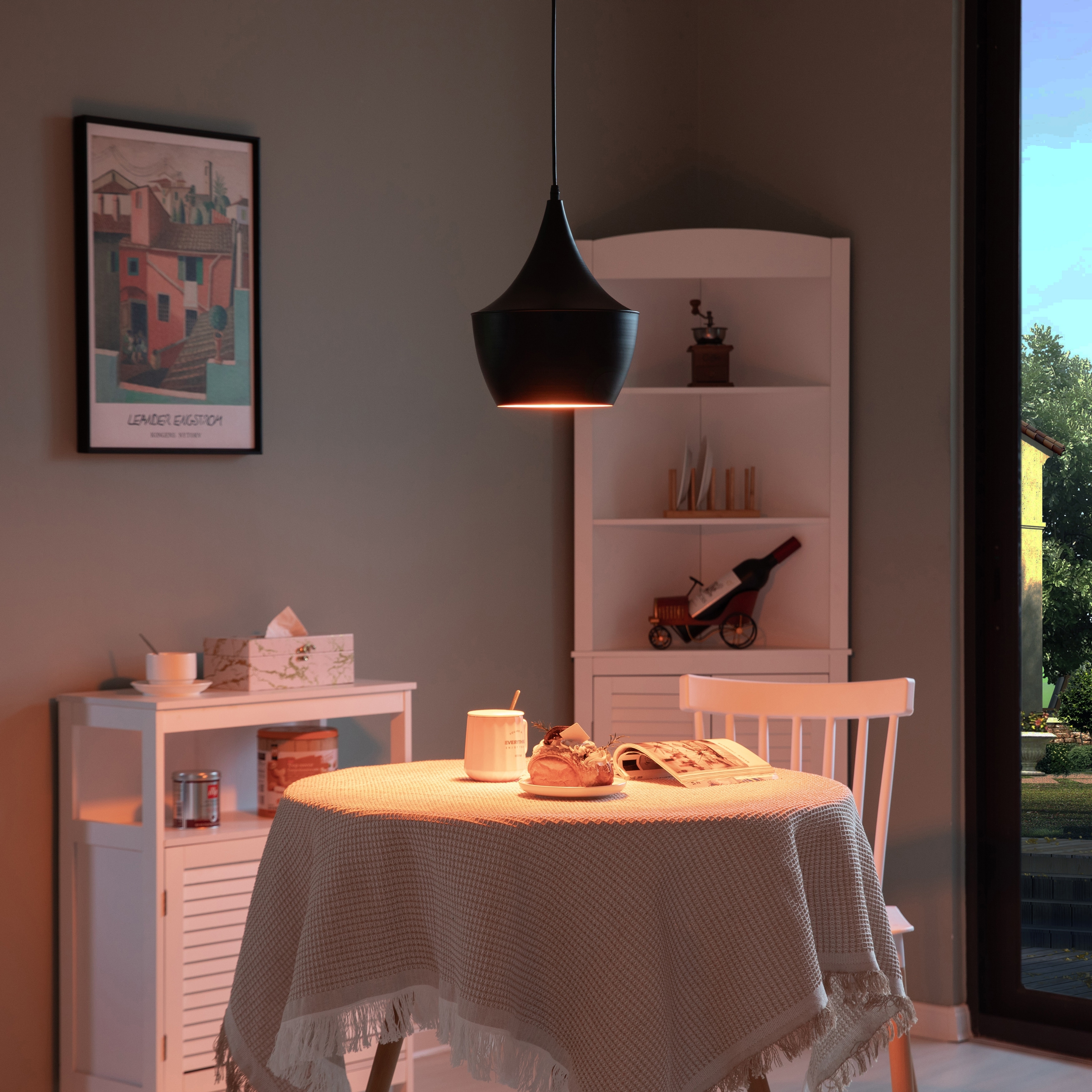 Modern Round Thick Metal Black Pendant Lamp, Ceiling Hanging Light Fixture, Black Decorative Chandelier