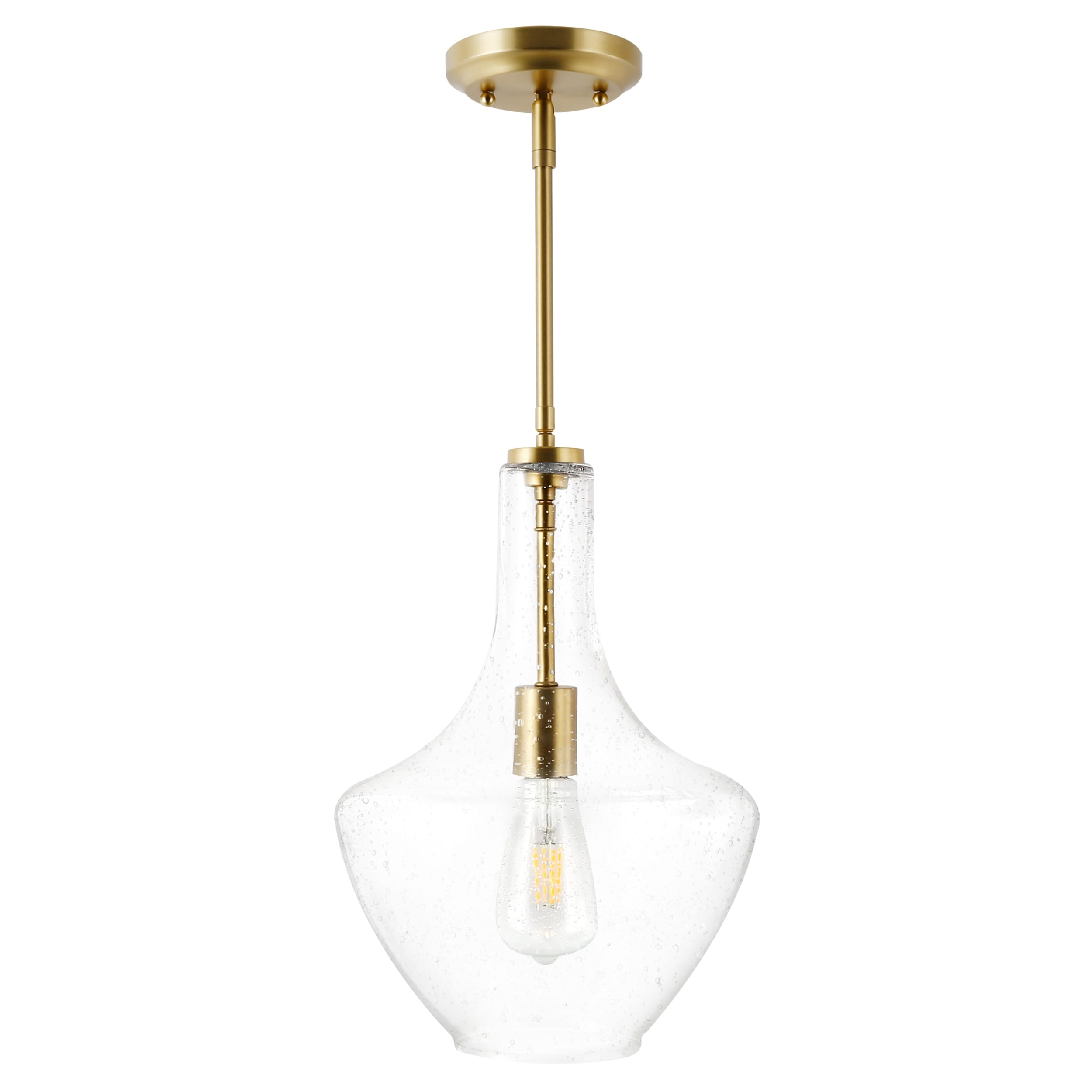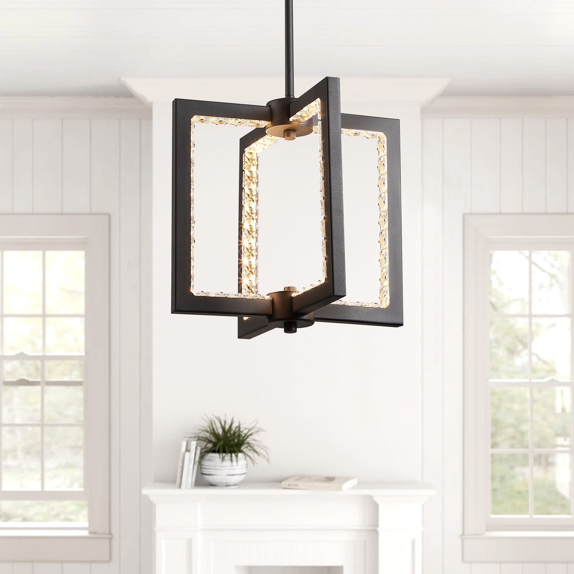 Rella Modern Farmhouse 1-Light Glam Gold Geometric Lantern Kitchen Island Pendant Foyer Lamp - W12"xH20.5"