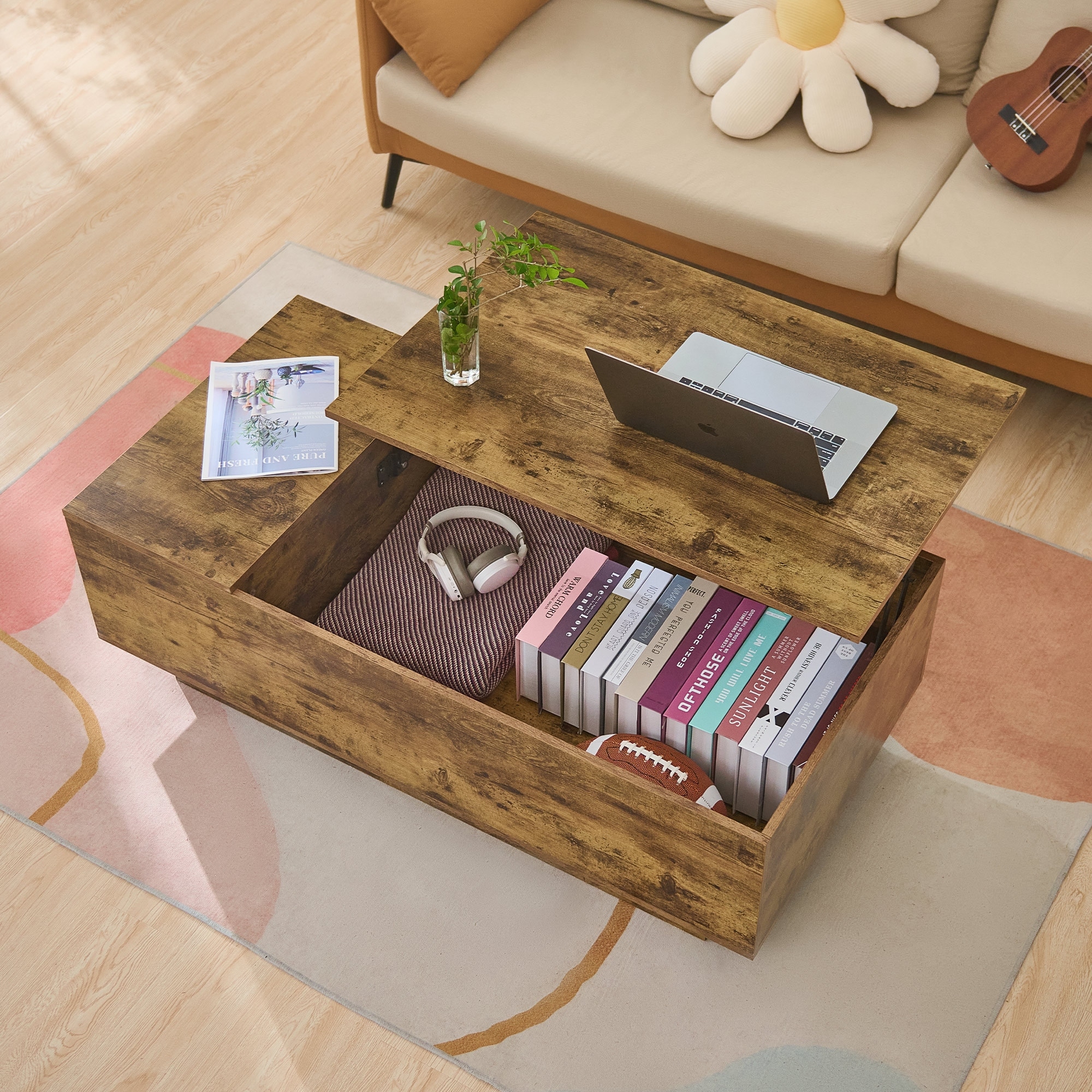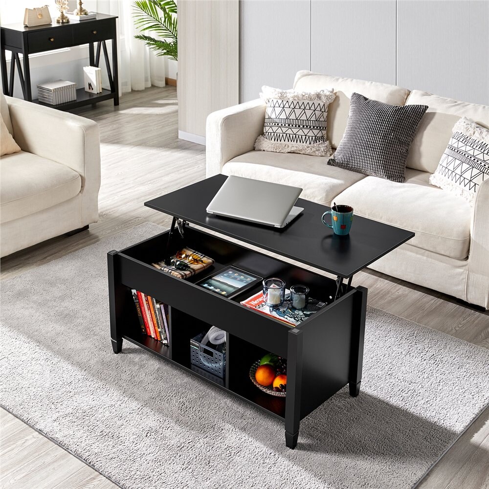 Lift Top Coffee Table with Hidden Compartment and Storage Shelf