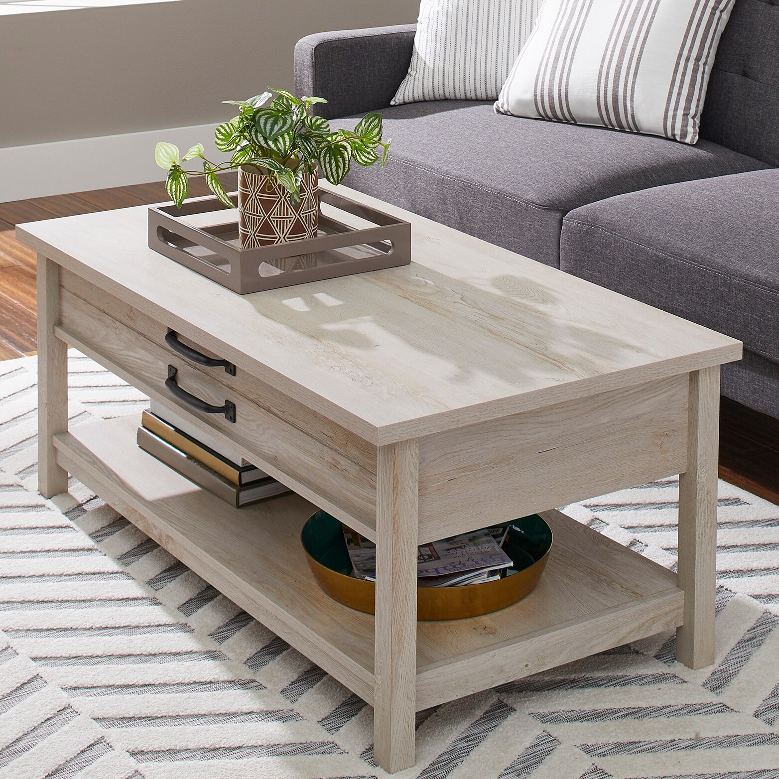Modern Farmhouse Rectangle Lift Top Coffee Table, Rustic White