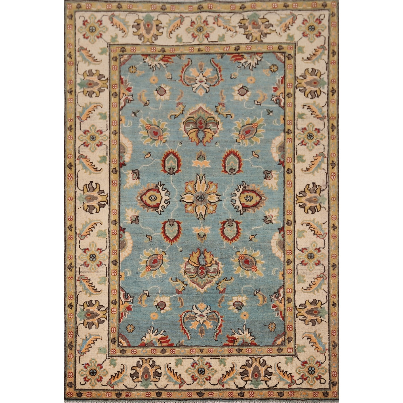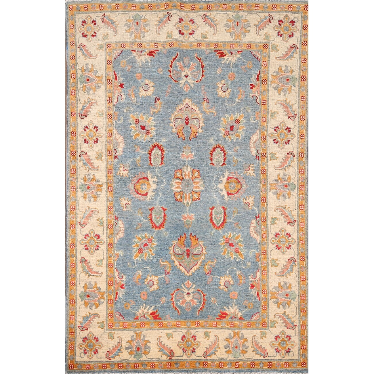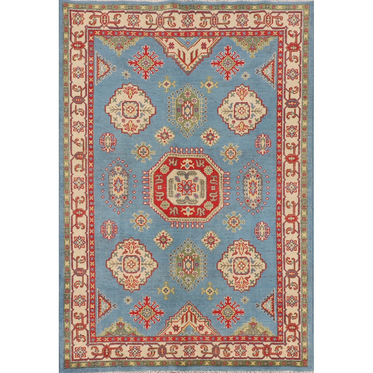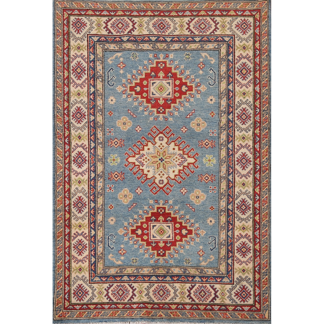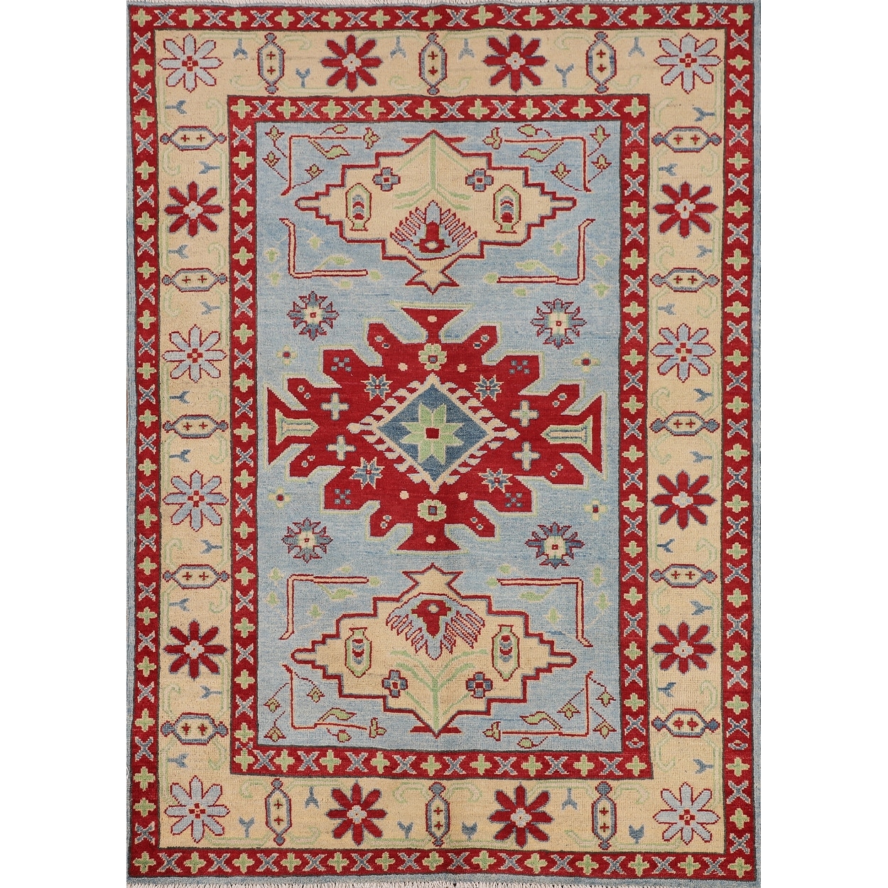 Light Blue Kazak Area Rug Handmade Wool Carpet - 4'0" x 5'11"