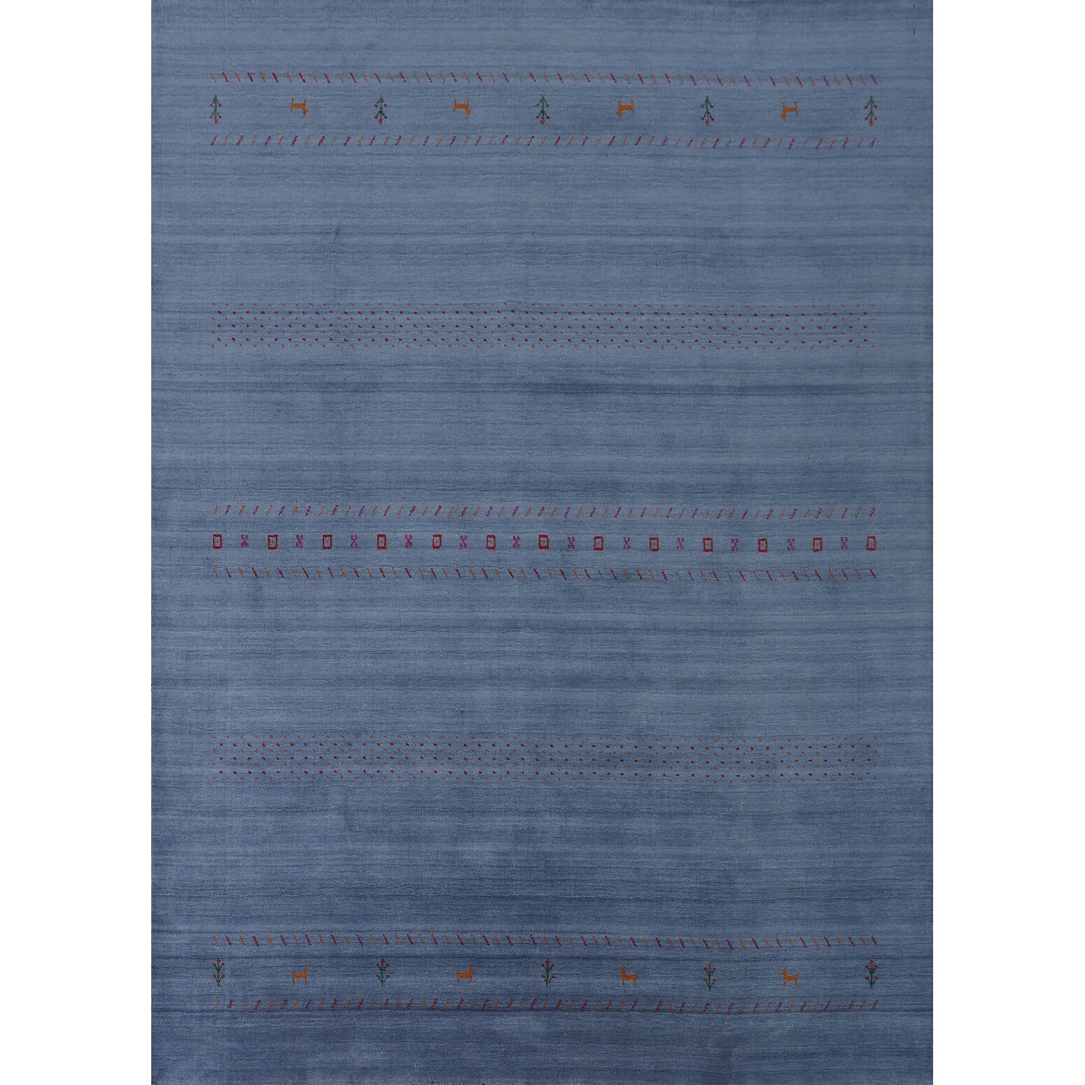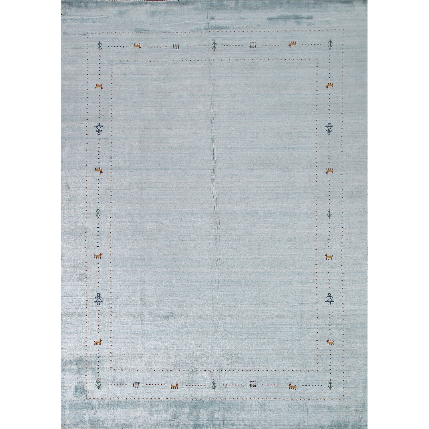 Light Blue Gabbeh Area Rug Handmade Wool Carpet - 7'9"x 9'9"