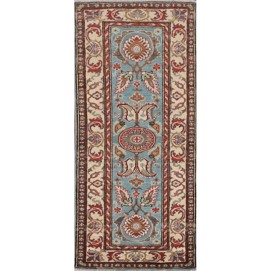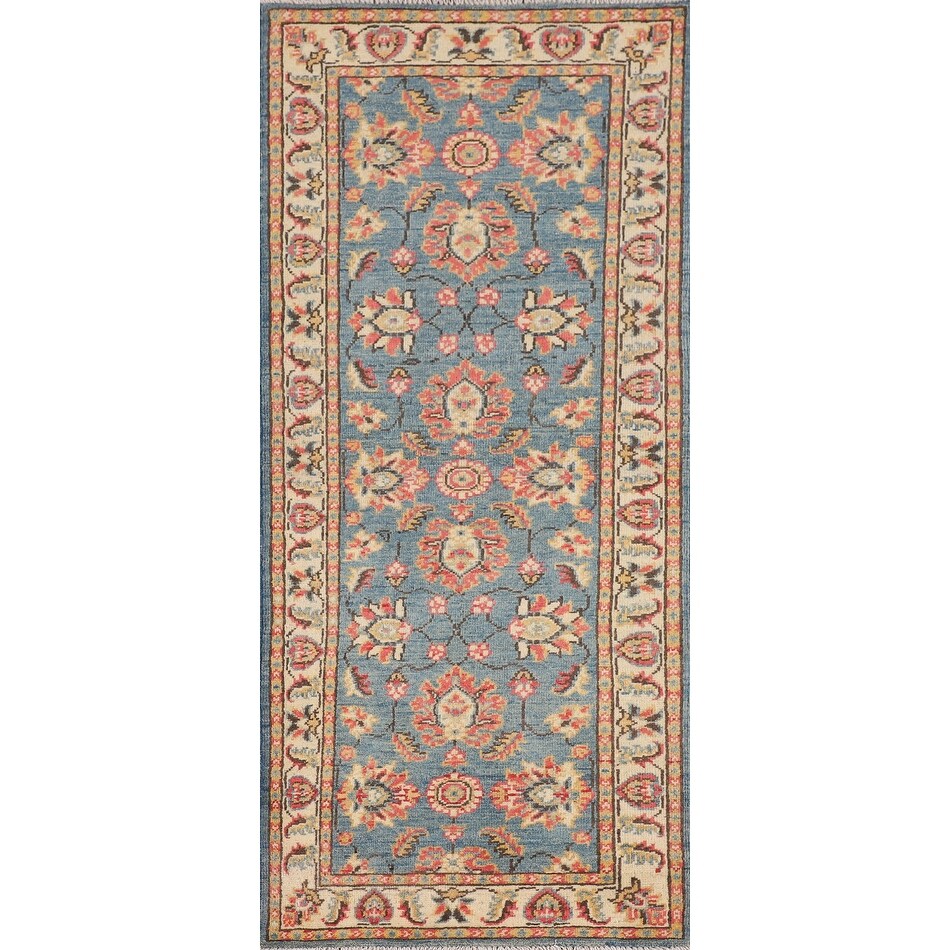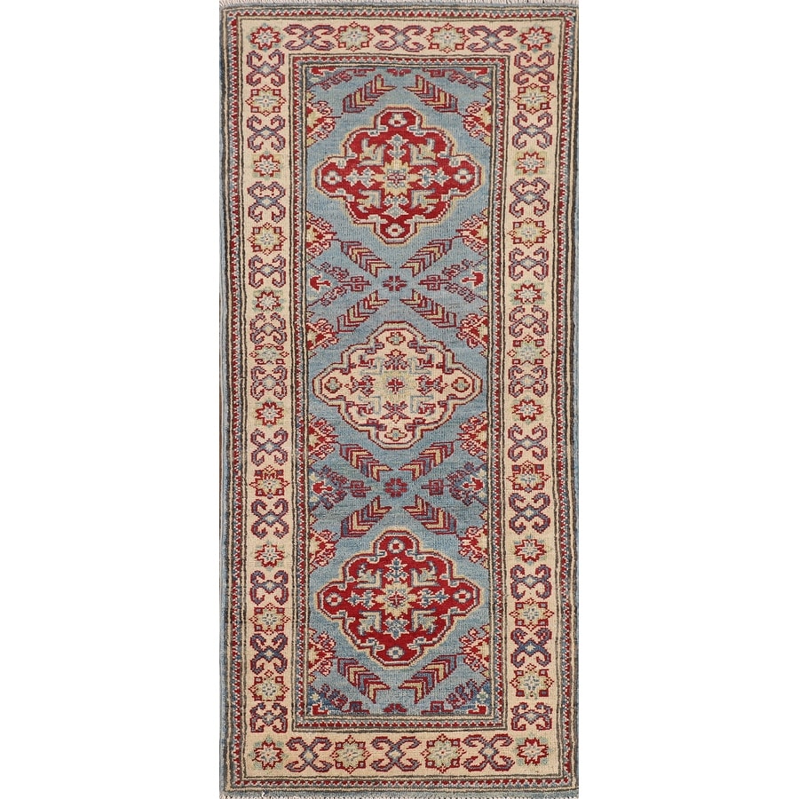 Light Blue Kazak Oriental Runner Rug Handmade Hallway Wool Carpet - 2'0" x 5'8"