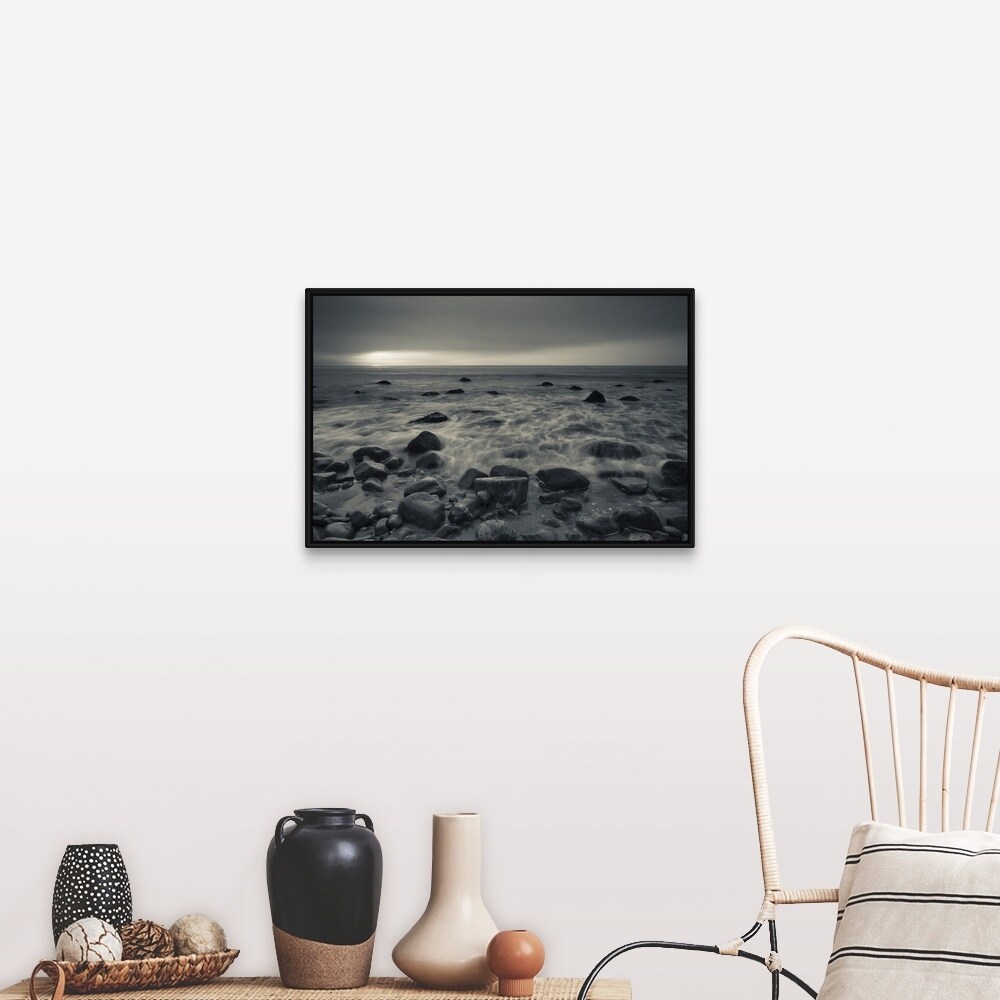 "Ocean at sunset, Montauk Point, Montauk, Long Island, New York State" Black Float Frame Canvas Art