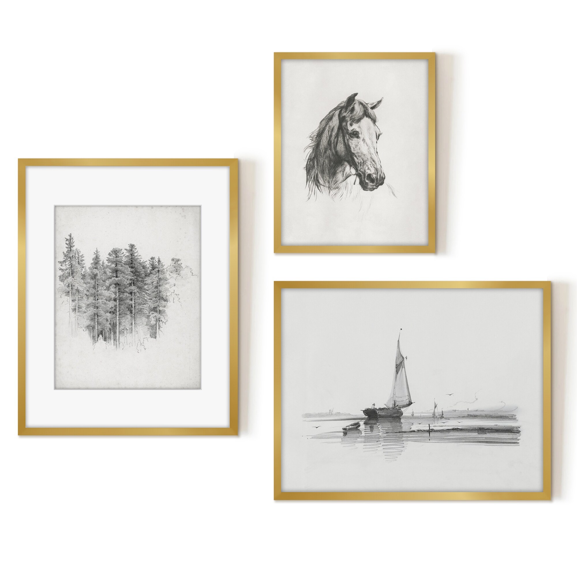 Americanflat 3 Piece Vintage Gallery Wall Art Set - Art by Maple + Oak