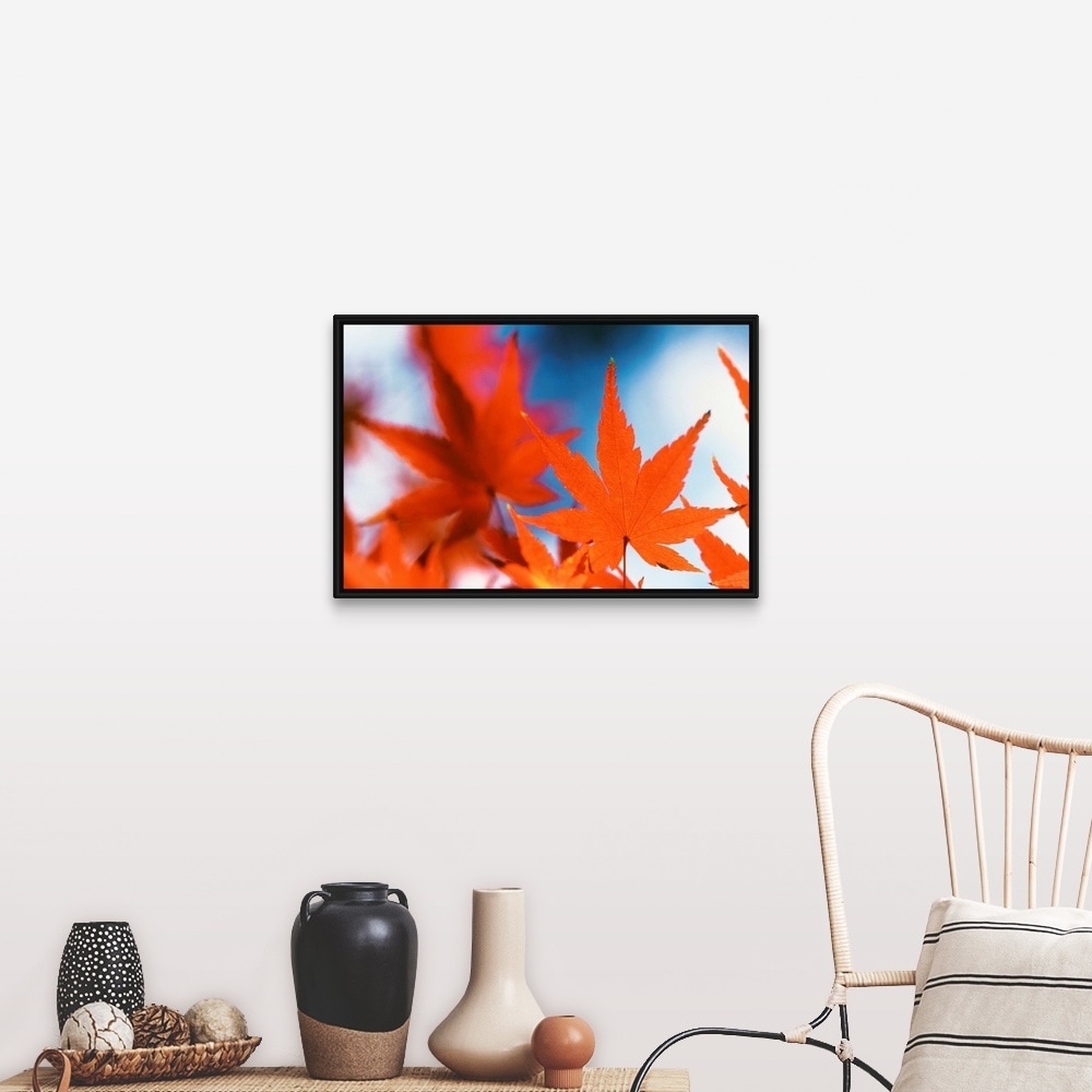 "Red Maple Leaves" Black Float Frame Canvas Art