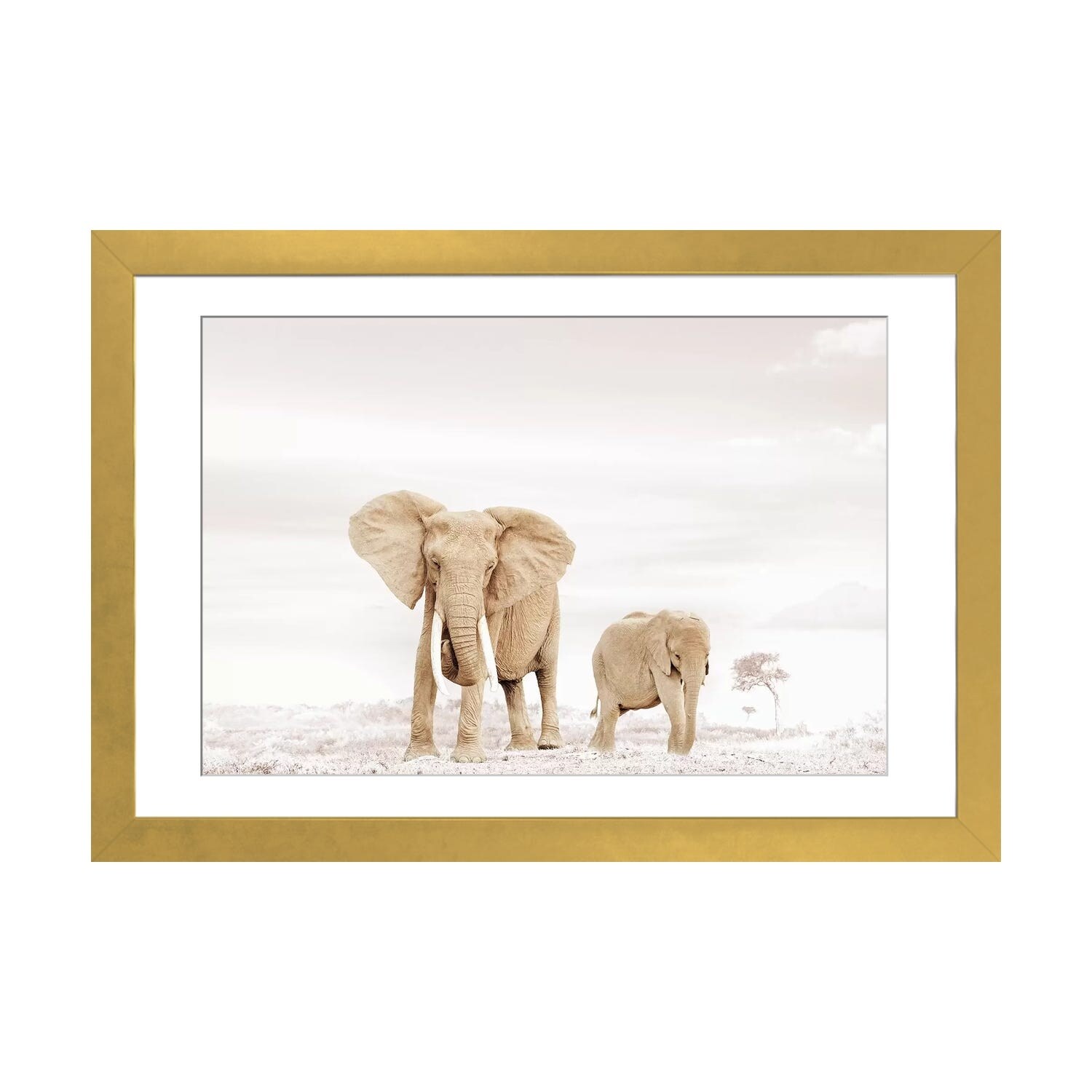 iCanvas "White Elephant Mom & Baby" by Klaus Tiedge