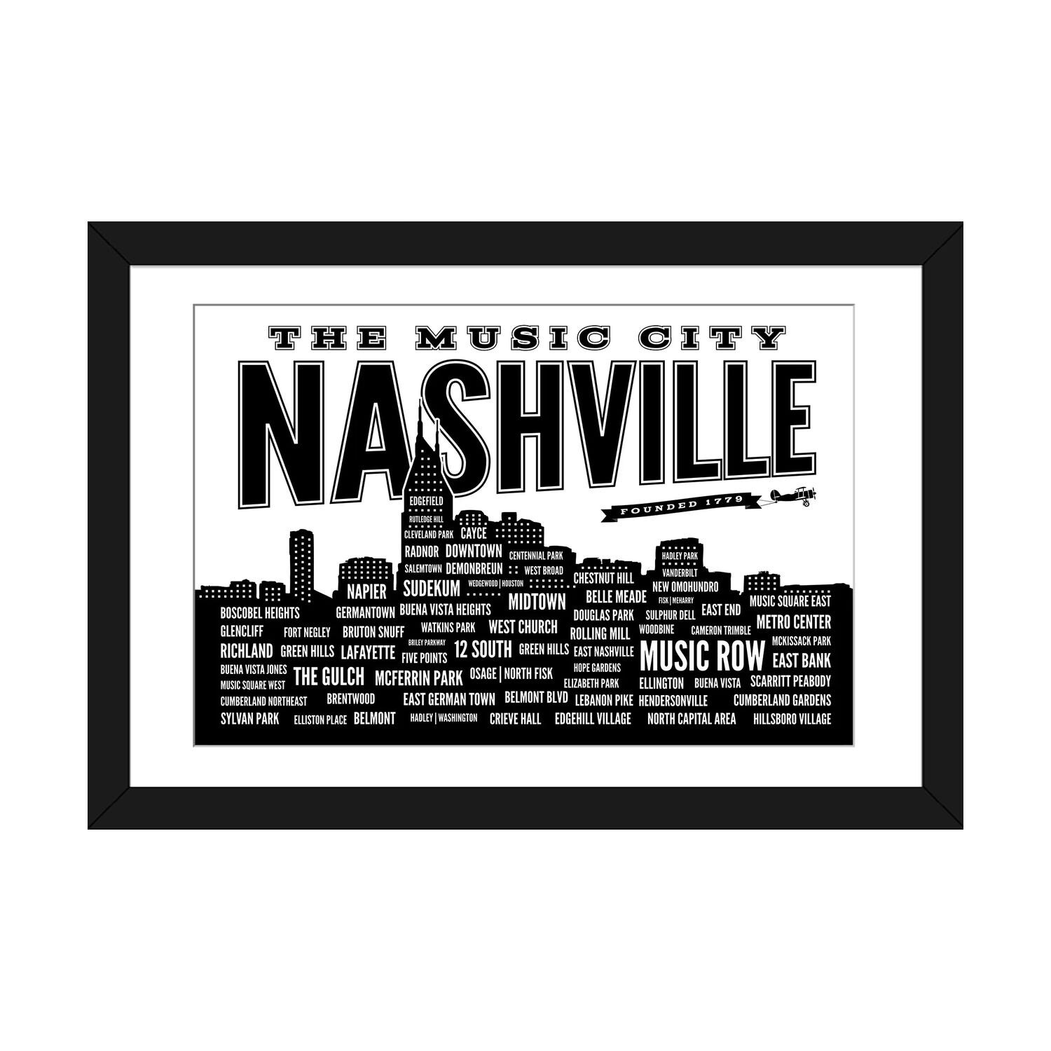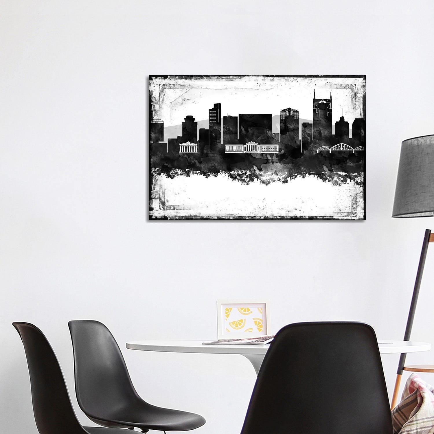 iCanvas "Nashville Black And White Framed Skylines" by WallDecorAddict Canvas Print