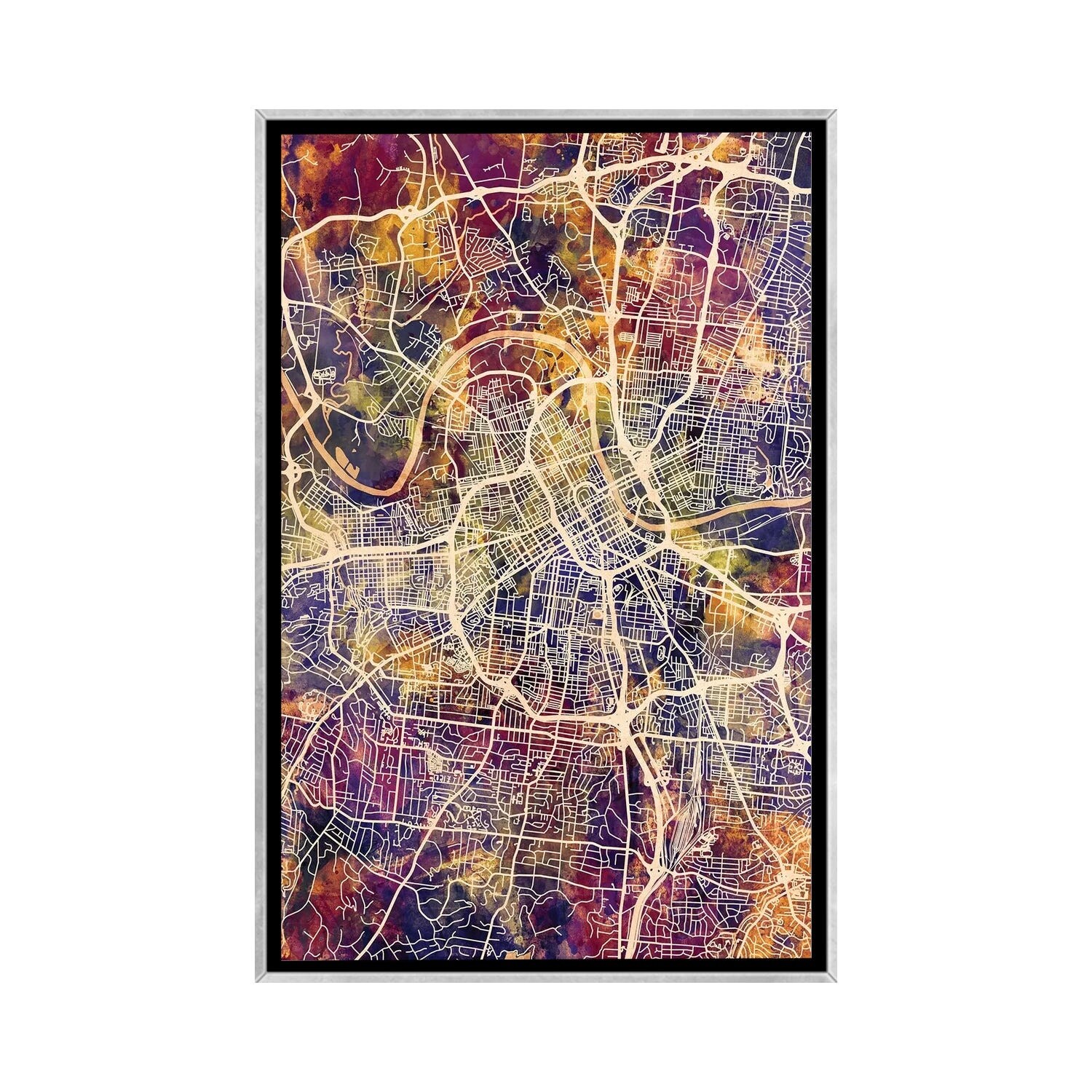 iCanvas "Nashville Tennessee City Map II" by Michael Tompsett Framed