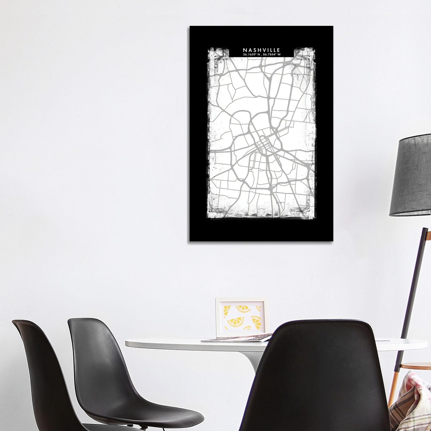 iCanvas "Nashville City Map Black White Grey Style" by WallDecorAddict Canvas Print